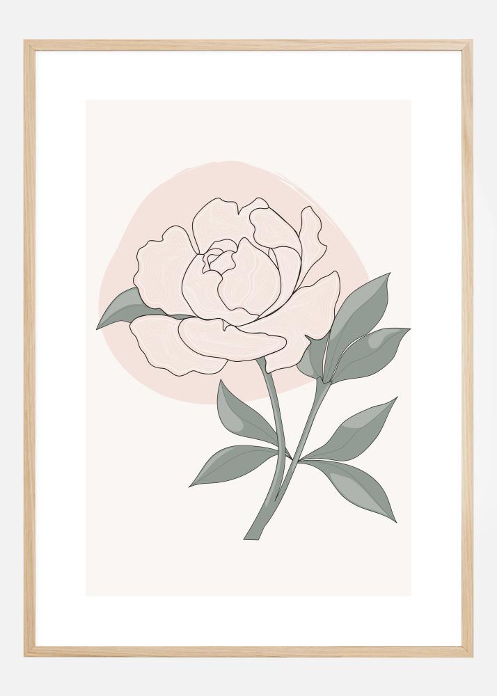 Kunstiposter pojengi varre ja roosa lillega. Beežil taustal on roosa lill paigutatud virsikuvärvi kujule, samal ajal kui lehed on visandatud mustaga. Too selle lille õrnus oma koju.