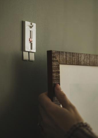 Kui oled valinud puidust pildiraami, saad lihtsalt varjata kinnitust, valides süvistatud peadega kruvid. Kui sul on aga õhem riiul valmistatud metallist, paistavad kruvid rohkem või vähem välja. Sellepärast on ilusam, kui kruvi on sama värvi kui riiul. Teine oluline asi, mida mõelda metallist pildiraamiga, on see, et kruvi peab avause korralikult katma, vastasel juhul on lihtne, et see ripub ebastabiilselt.