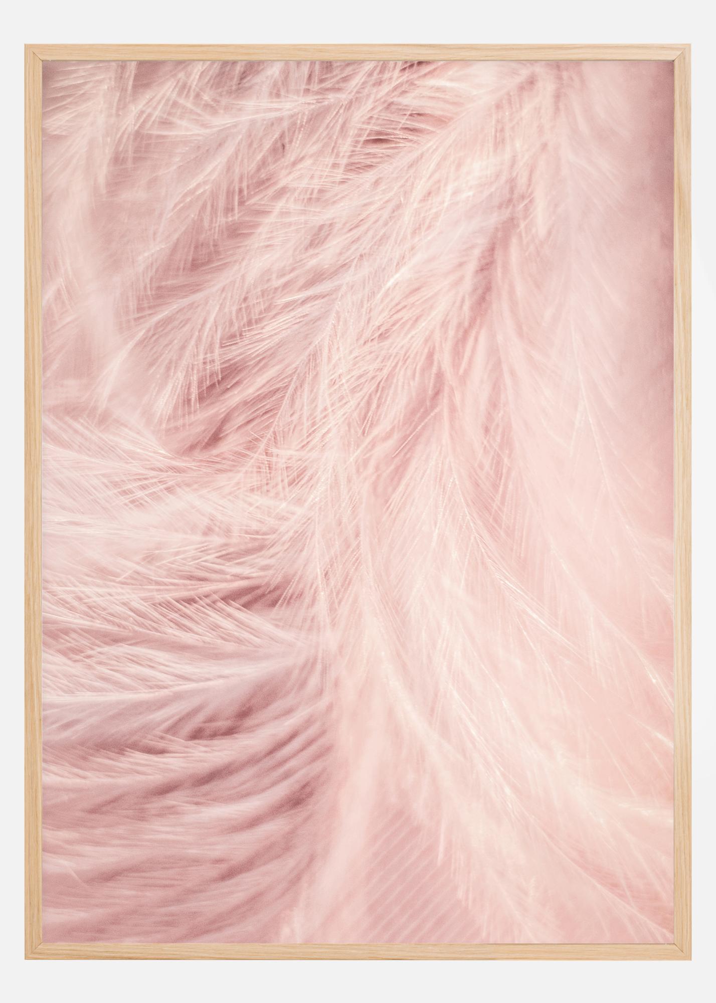 Imekaunis lähivõttega plakat pehmete roosade sulgedega. Tänu sulgedele langevale tugevale valgusele on ebaselge, kas suled on tegelikult roosad või valged. Kas sulgedelt peegeldub roosa valgus? Riputa see oma koju, et luua pehme soe tunne.