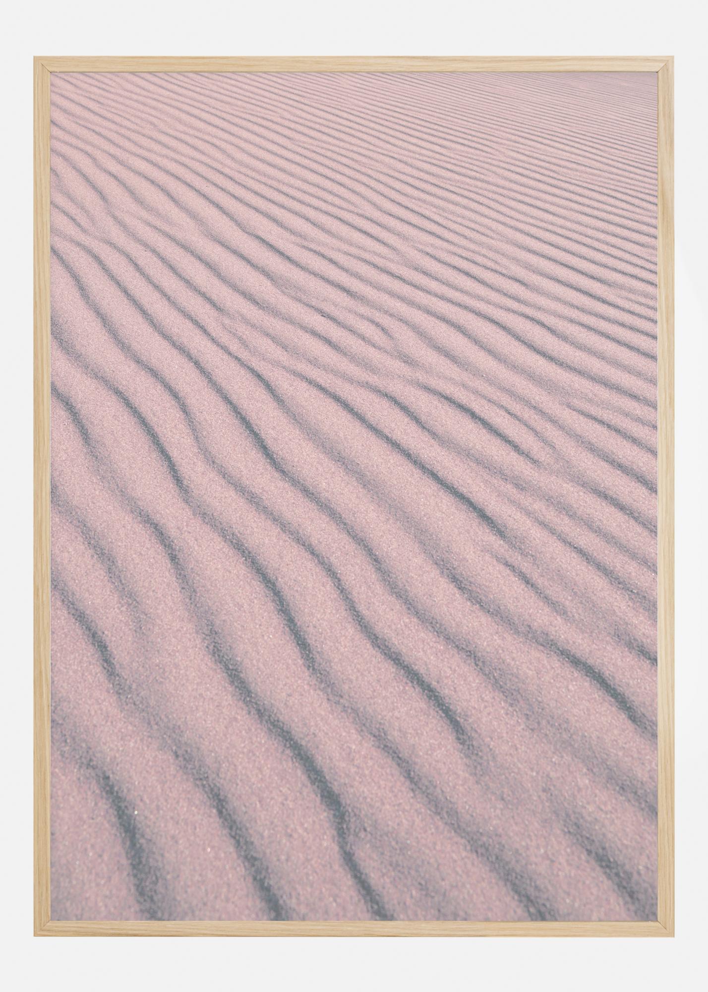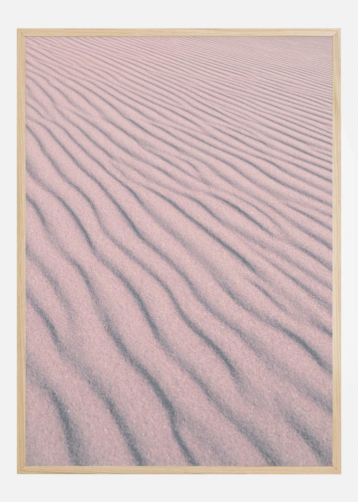 Imeline plakat roosade liivalainetega. Paralleelsed liivalained jooksevad ühtlaselt üle trüki ühest servast teise. Pehmed roosad toonid loovad soojuse ja rahu tunde. Too koju kaunid roosad toonid.