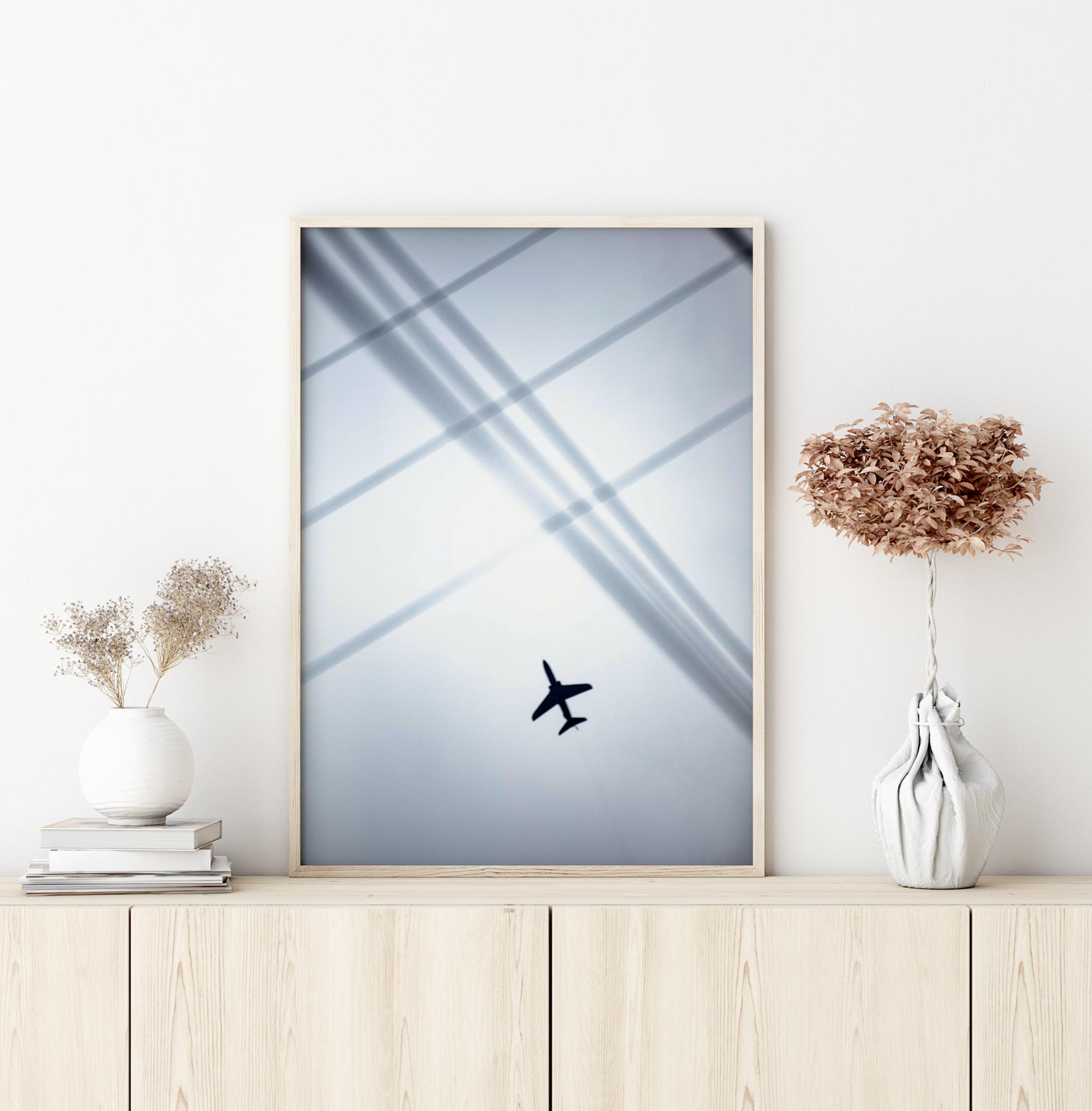 Konnavaade lennukist, mis lendab meist üle. Ere päikesevalgus toob esile lennuki, kui see on teel tundmatusse sihtkohta. Mustad paralleelsed jooned annavad trükisele värvinüansi. Arva ära lennuki lõppsihtkoht, kui riputad plakati kodus üles.