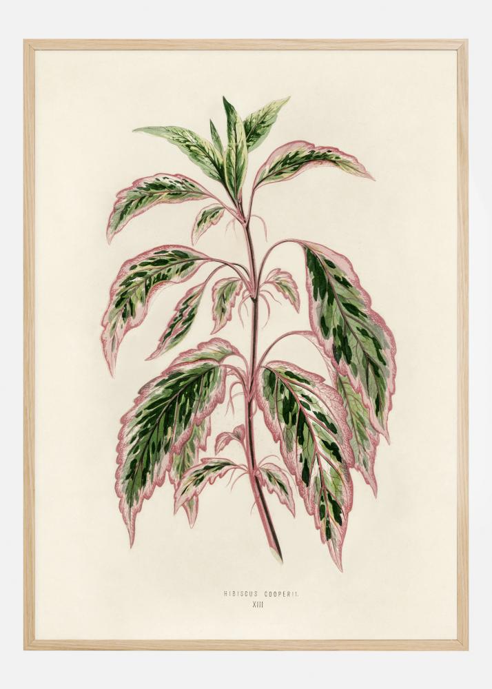 Plectranthus scutellarioides'i peen trükk. Pehme beez taust toob esile kaunid roosad ja rohelised lehed. Oma pehmelt toonitud lehtedega annab see rippuv taim rahu tunde. Täiuslik kingitus kõigile, kes armastavad taimi.