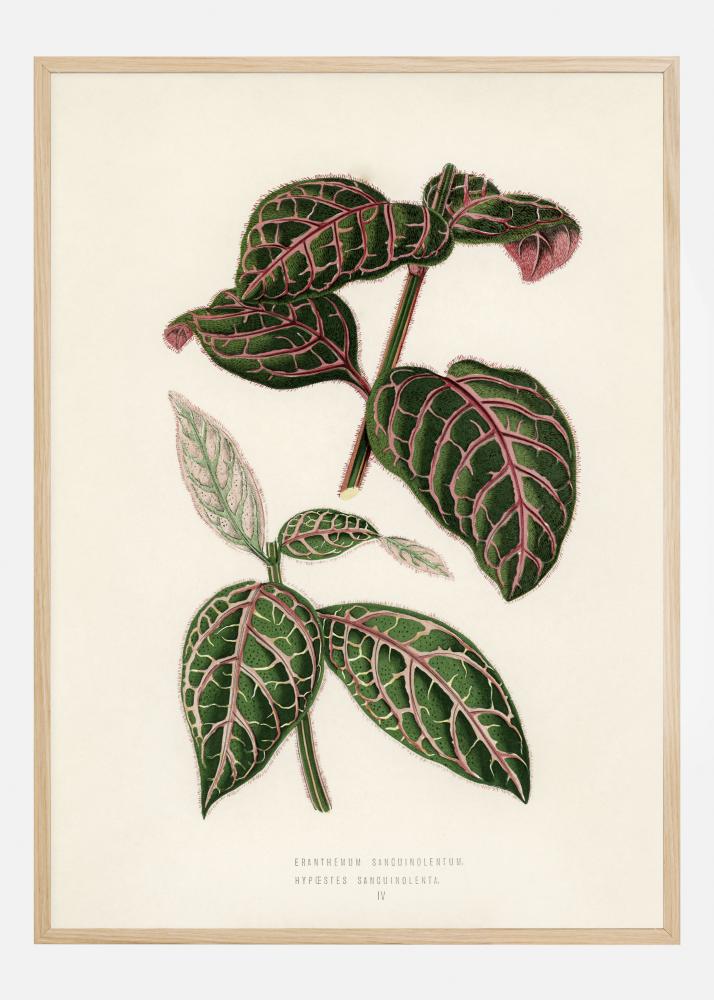 Võluv botaaniline trükk kahest lehega varrest. Beezhi taustal on igal varrel neli rohelist ja punast lehte koos valgete soontega. Varsed on esile tõstetud peene, punase äärisjoonega, mis loob sooja atmosfääri. Ideaalne poster riputamiseks botaanilisse keskkonda.