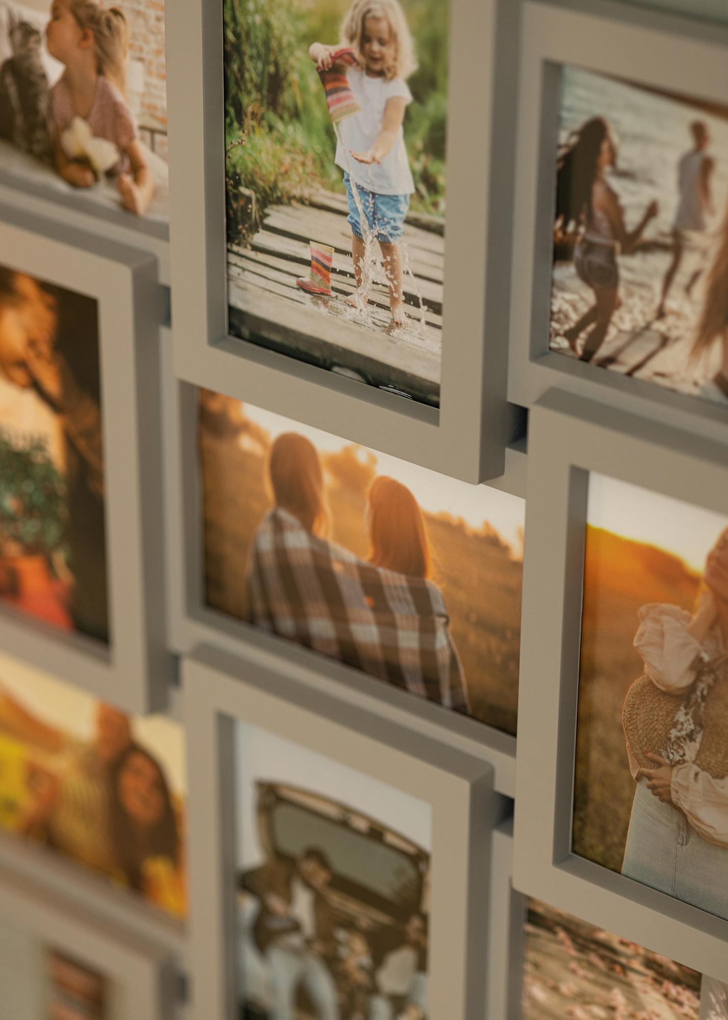 Selle kollaažraamiga saab 12 sinu kauneimat fotot raami, mis toob esile motiivi. Neutraal värv muudab raami lihtsaks erinevate motiividega sobitada, samal ajal kui fotode värvitoonid tõusevad esile. Raam sobib piltide jaoks suuruses 10x15 cm, nii püst- kui ka rõhtformaadis. Sa saad ise valida, kas soovid raami seinale riputada horisontaalselt või vertikaalselt.