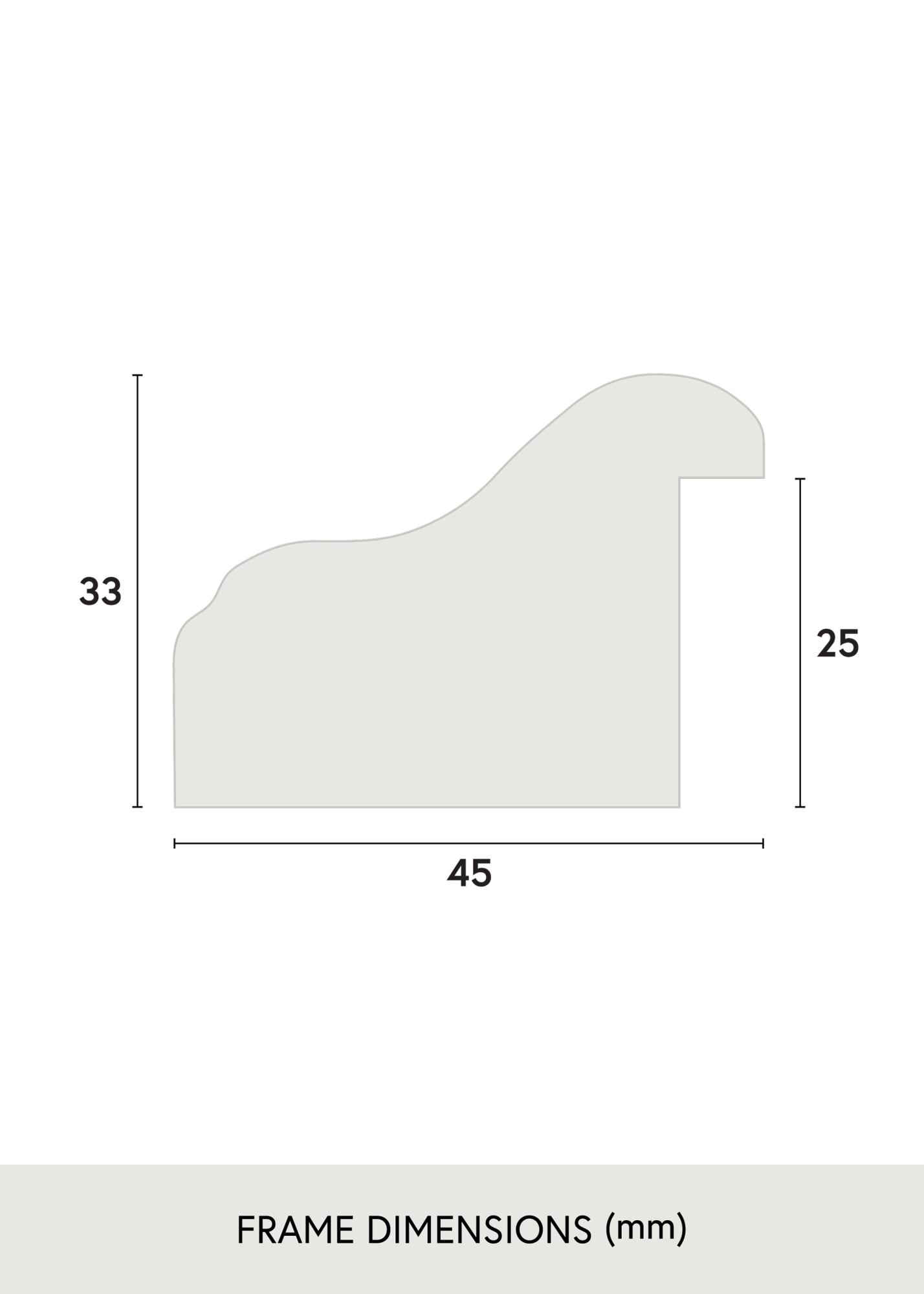 Raam on valmistatud komposiitmaterjalist, mis annab sellele nii tugevuse kui ka kerguse. 33 mm sügavusega on sellel pildiraamil tugev ja kindel tunne, kuid see säilitab elegantse profiili. Sile viimistlus ja kuldne toon loovad ajatult kauni ilme, sobides suurepäraselt nii traditsioonilisse, minimalistlikku kui ka luksuslikumasse interjööri.
