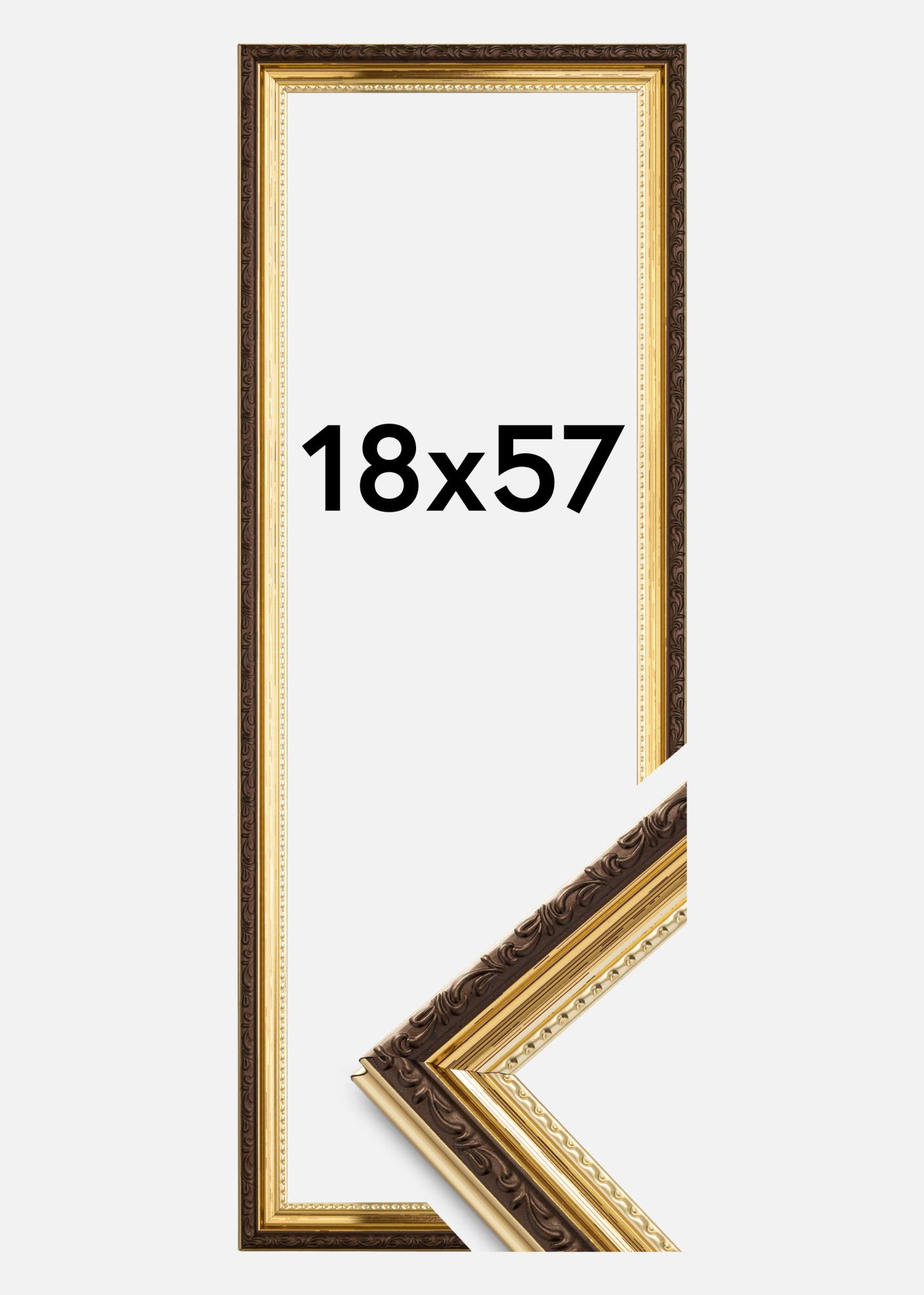 Otsid kaunilt kaunistatud raami vanemas stiilis? Abisko Akrüülklaas Kuld on tugev kuldraam uskumatult stiilsete ornamentidega. Raami 25 mm laiune liist on läikiva kullavärviga, keskel kaunistatud pruuni äärega. Isegi kuldosa on kaunistatud, kõige lähemal klaasile on laineline muster.