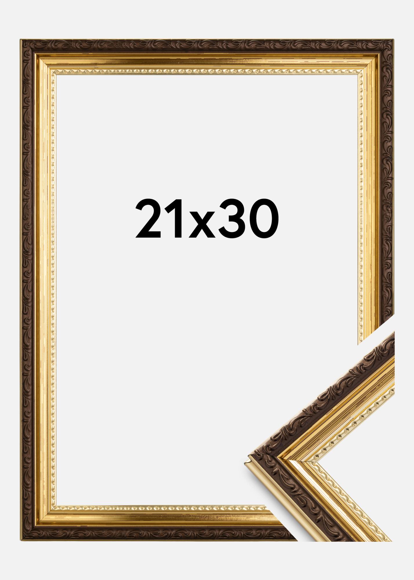 Kas otsite kaunilt kaunistatud raami vanemas stiilis? Abisko Akrüülklaas Kuld on tugev kuldne raam uskumatult stiilsete ornamentidega. Raami 25 mm laiune ääris on läikiva kullavärviga ja keskel on kaunistatud pruun ääris. Ka kullaosa on kaunistatud, klaasile lähemal lainelise mustriga.