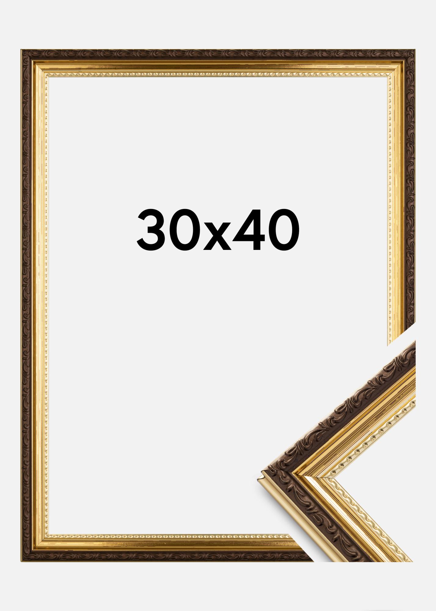 Otsid kaunilt dekoreeritud vanaaegses stiilis raami? Abisko Akrüülklaas Kuld on tugev kuldraam uskumatult stiilsete ornamentidega. Raami 25 mm laiune liist on läikiva kullavärviga, mille keskel on kaunistatud pruun ääris. Ka kullatud osa on kaunistatud, lainelise mustriga klaasi lähedal.