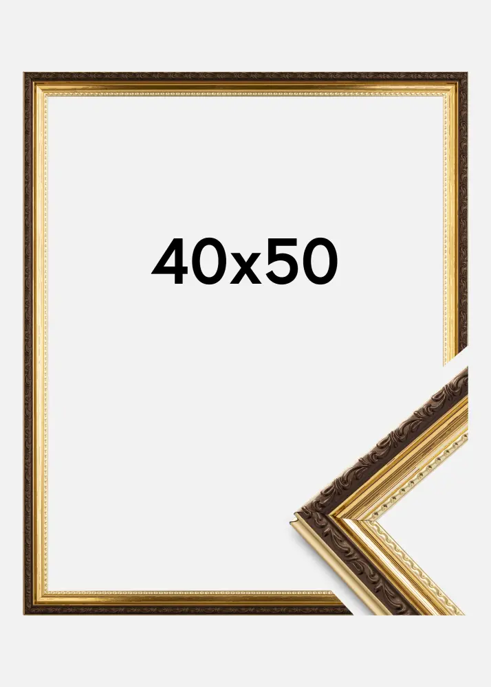 Kas otsite kaunilt kaunistatud vanaaegset stiilis raami? Abisko Akrüülklaas Kuld on vastupidav kuldraam uskumatult stiilsete ornamenditega. Raami 25 mm laiune liist on läikiva kullavärviga ja keskel on kaunistatud pruun äär. Ka kullaosa on kaunistatud, lainelise mustriga klaasi lähedal.