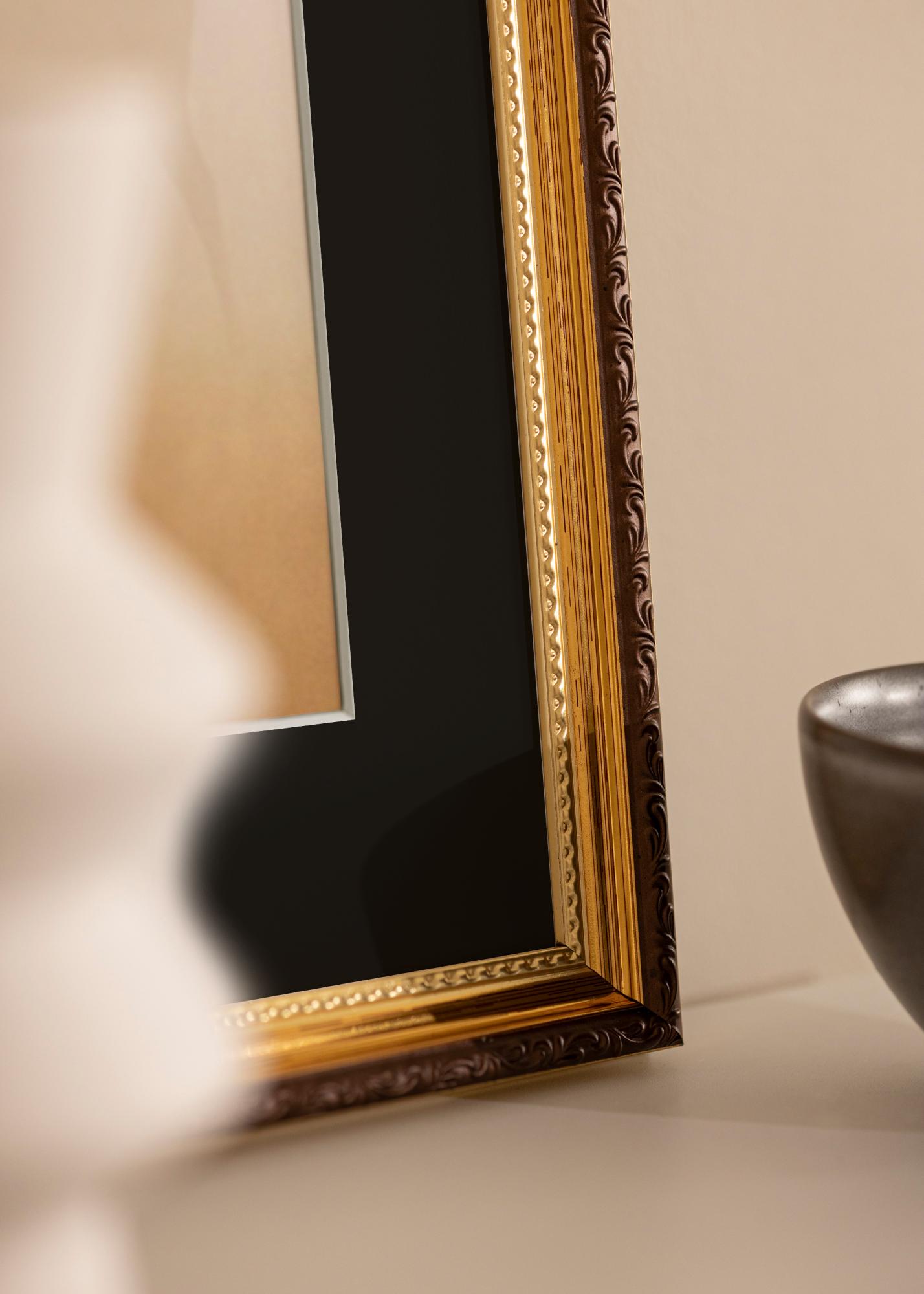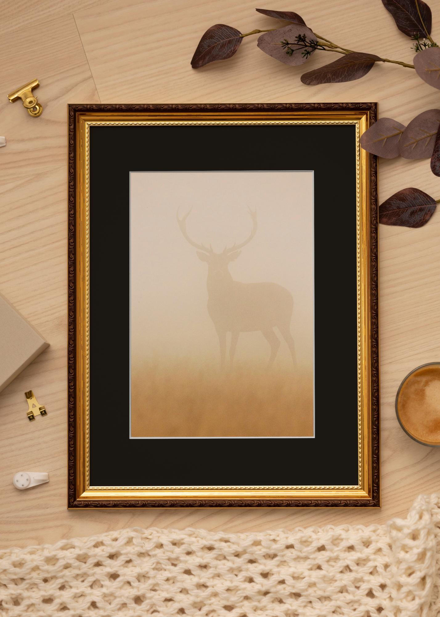 Anna oma piltidele vääriline tähelepanu elegantse kuldraamiga, mida täiendab must passepartout. See fotoram, oma läikivate pindade ja klassikalise disainiga, tõstab esile 18x24 cm suuruse motiivi ja pakub professionaalset raamimist. Passepartout' must värv loob kontrasti, mis toob esile pildi ja kaitseb seda, hoides klaasi motiivist eemal.