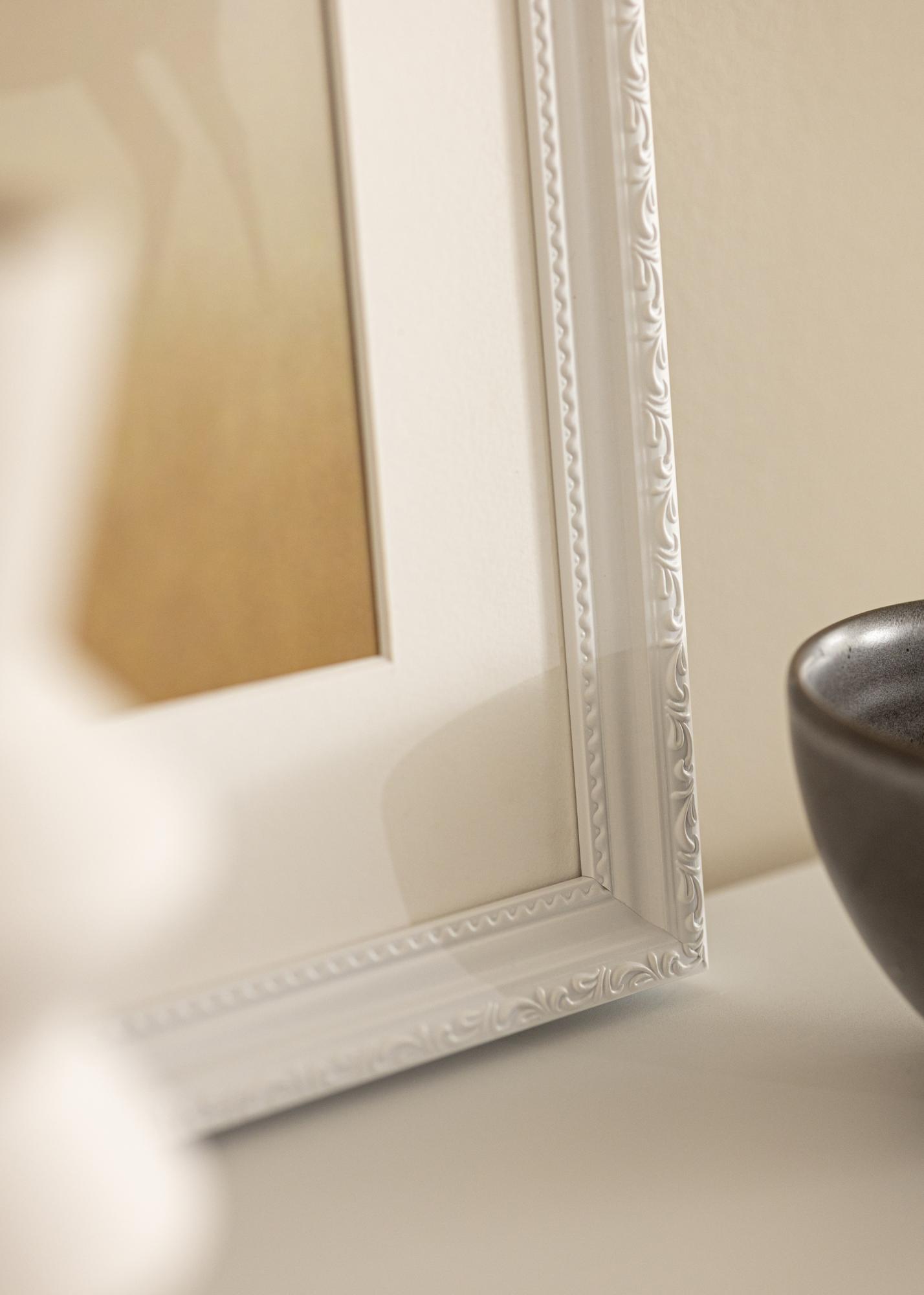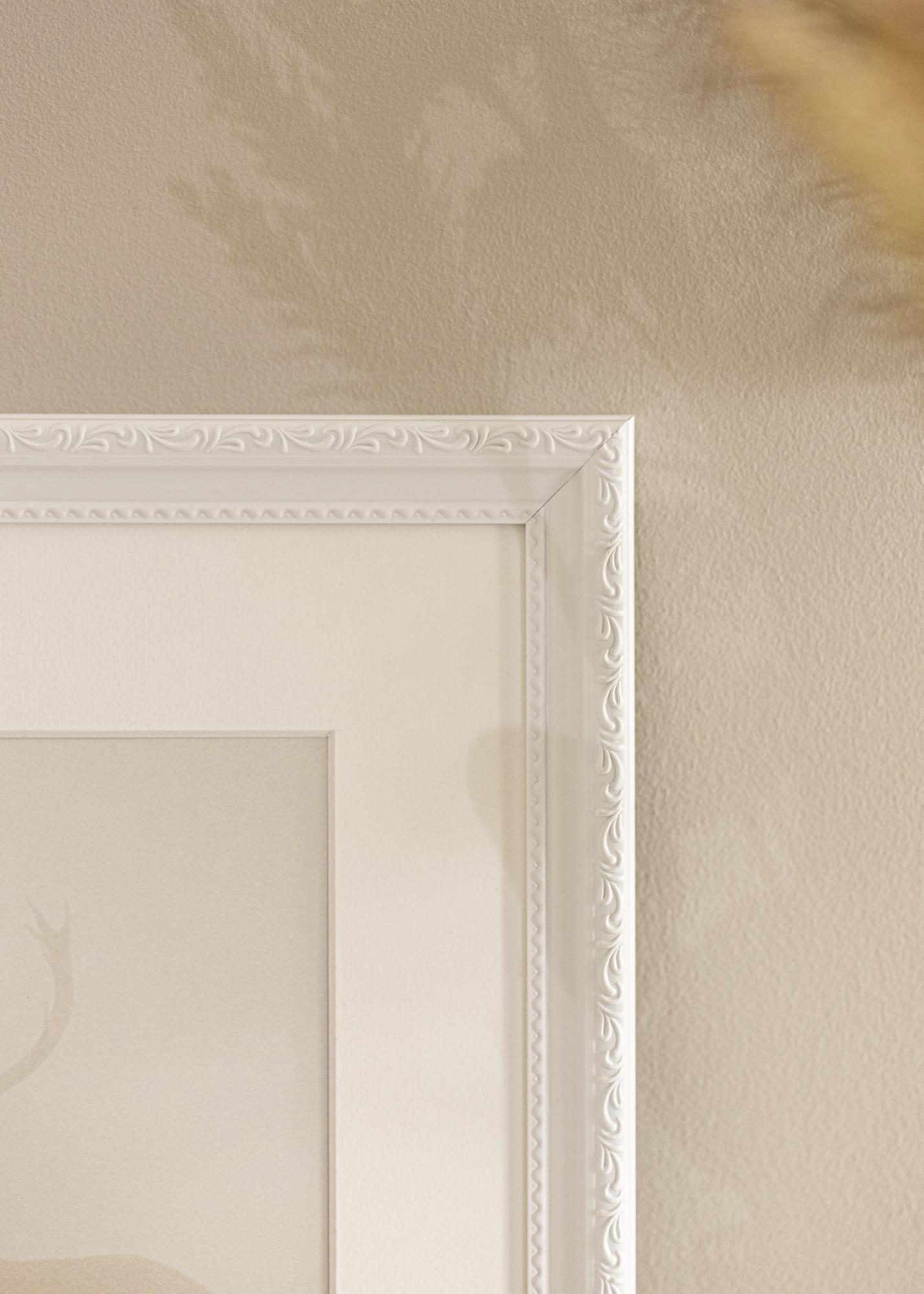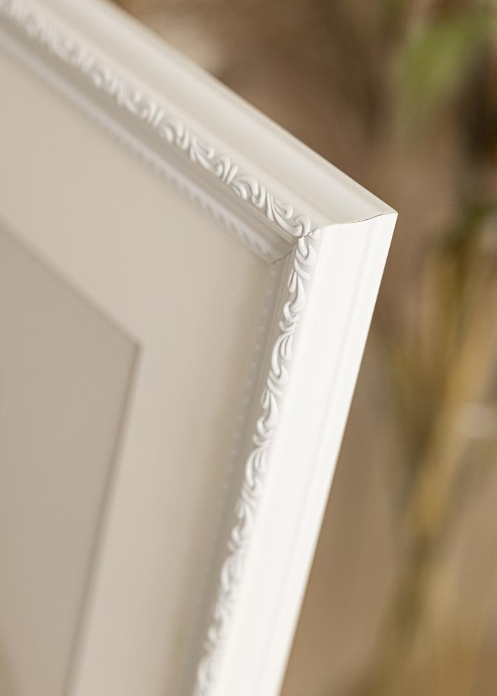 Käivita raamivalija »Abisko Valge on elegantne retrostiilis pildiraam koos kaunite kaunistustega. Sobib väga hästi, kui otsite valget raami vanemas stiilis.