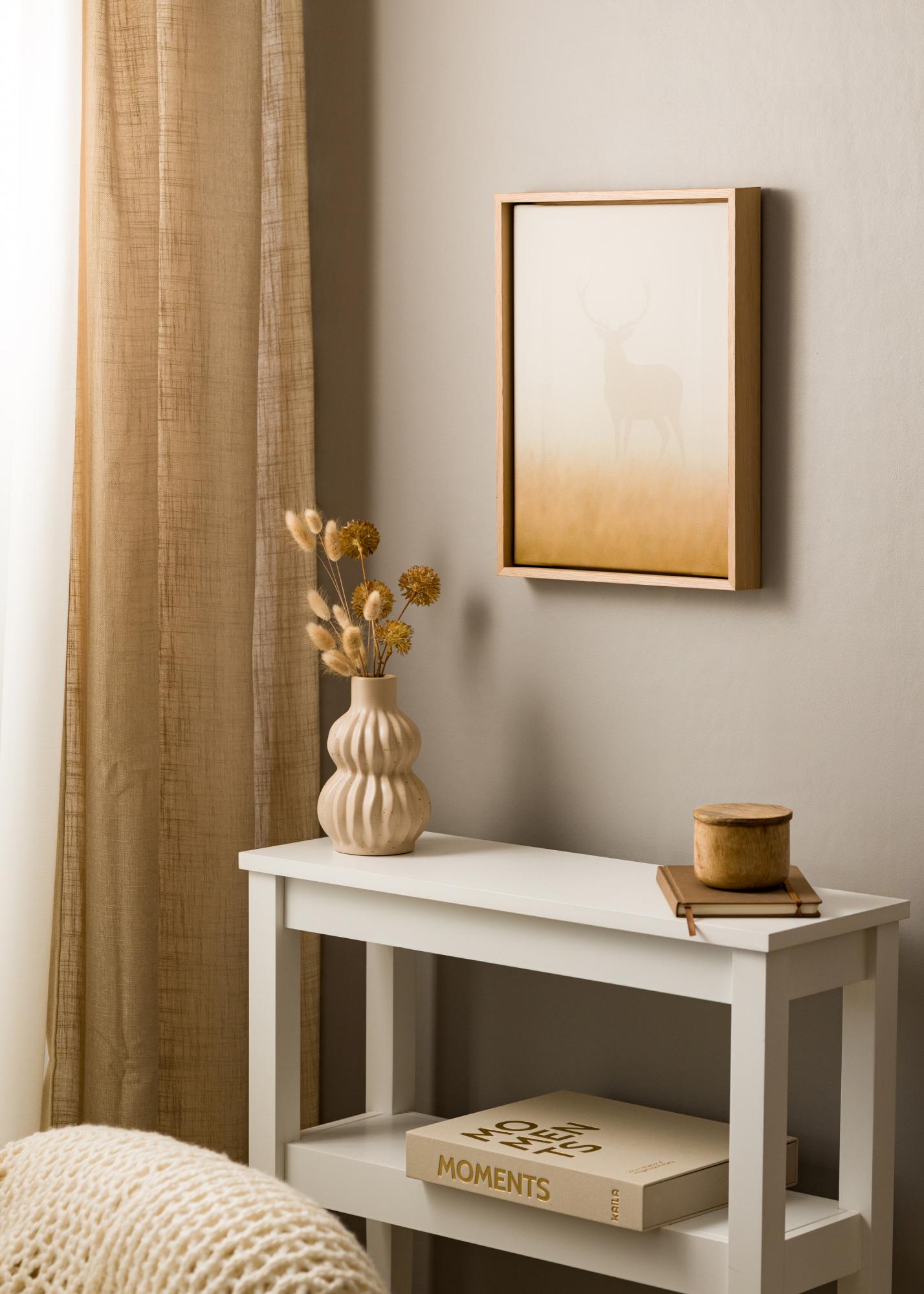Raamil on 55 mm laiune raamiriba ja sügavus 45 mm, tehes selle nii robustseks kui ka stiilseks. Sile, matt pind koos sirgete servade ja kitsa esiosaga loovad moodsa ilme, mis sobib enamikku kodudesse. Valmistatud männipuust, ühendab see pildiraam vastupidavuse ja esteetika.