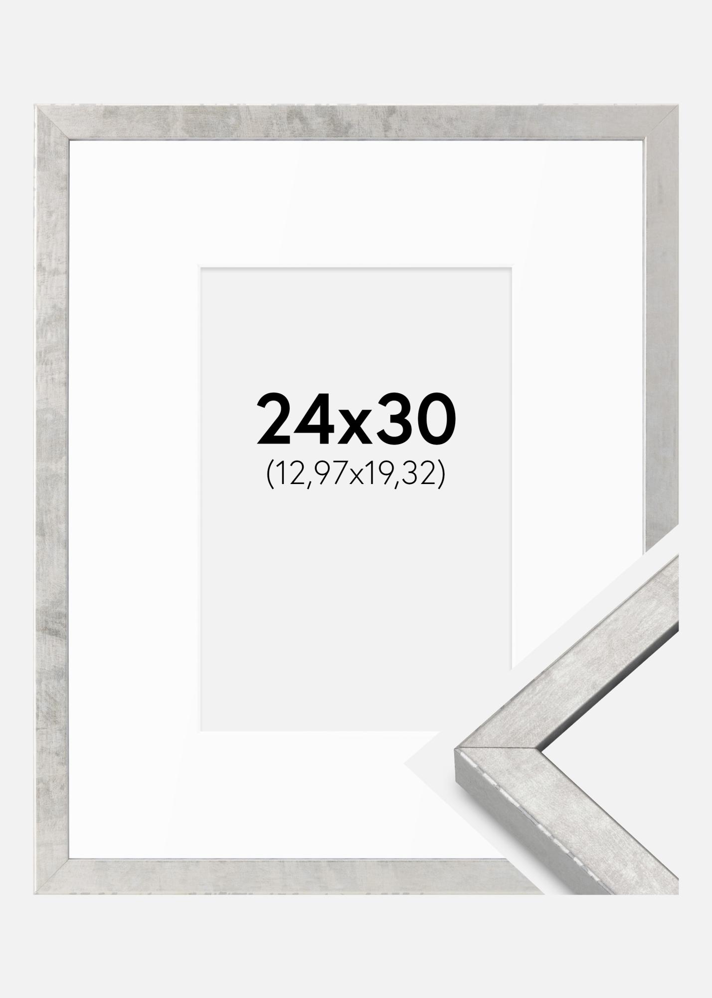 Raam Ares Hõbedane 24x30 cm - paspartuu Valge 5,5x8 tolli