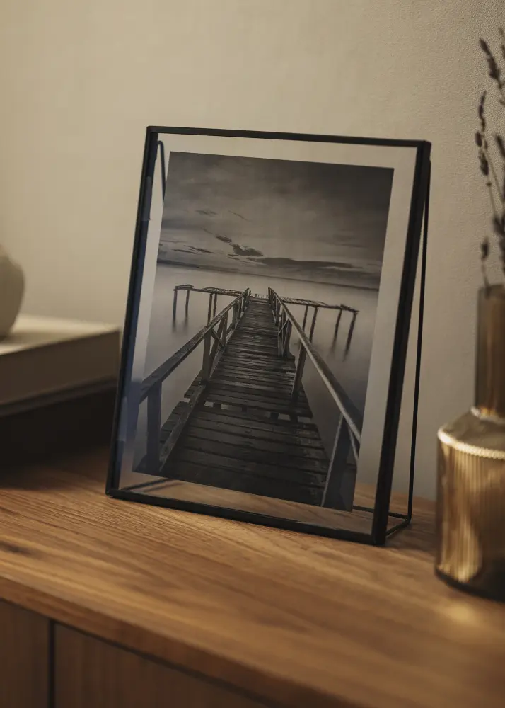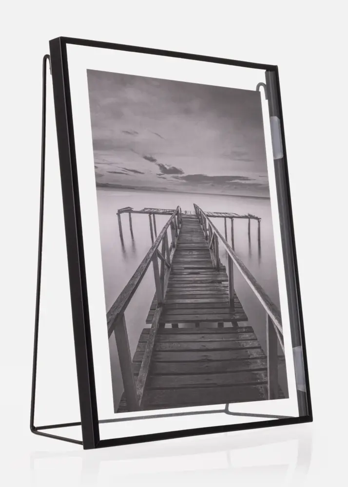 Pildiraamil on stiilne statiiv, mis annab hõljuva mulje, muutes selle suurepäraseks valikuks lauale, riiulitele või diivanilaudadele asetamiseks. Avatud ja õhuline disain sobib eriti hästi mustvalgete fotode või kunstiteoste jaoks, mis kasutavad ära stiilset ümbrust. Mõõtmetega 10 x 15 cm on see pildiraam nii praktiline kui ka esteetiliselt meeldiv.