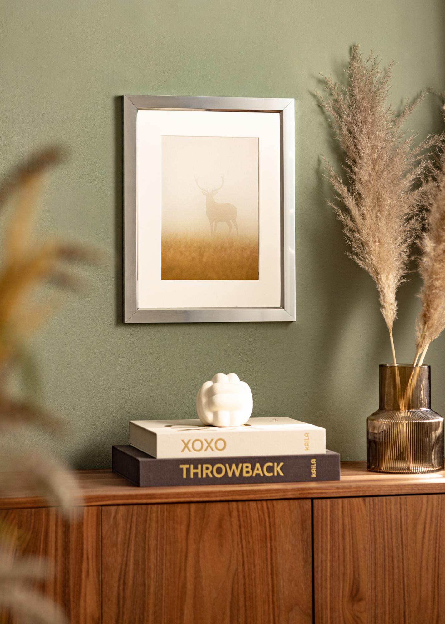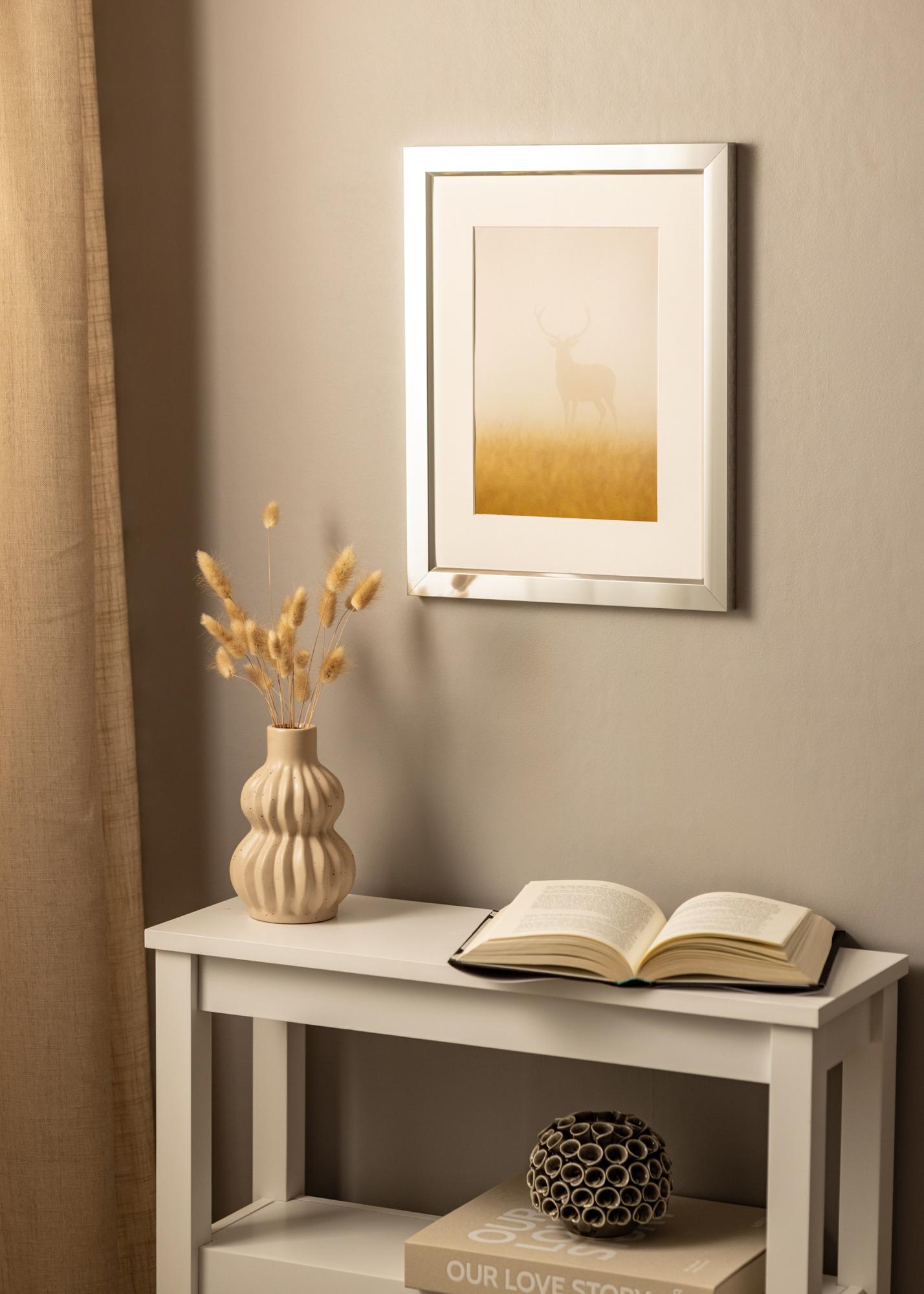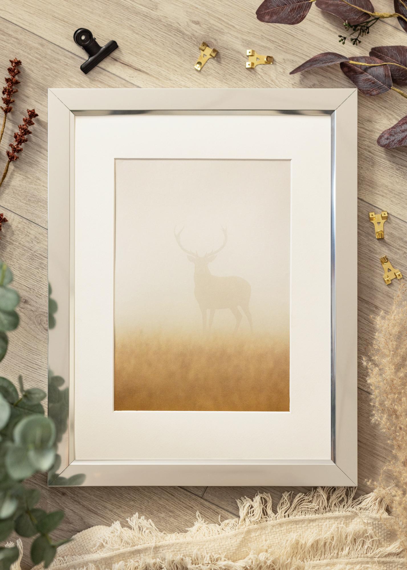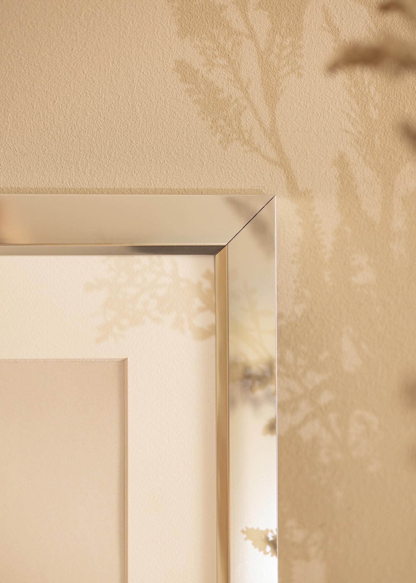 Stiilne läikiv hõbedane raam peegliklaasi tundega, mis koosneb kvaliteetsest riba-alumiiniumriba valmistatud Saksamaal. Kõrgläikega välimus tõmbab silmad enda poole ja peegeldab valgust kaunilt, tõmmates fookuse motiivile. Raami minimalistlik disain võimaldab sellel ilusasti sobituda kaasaegsetesse interjööridesse, kuid see võib olla ka stiilne aktsent teistes sisustusstiilides. Täienda raami paspartuuga, et pilt saaks oma õige olemuse.