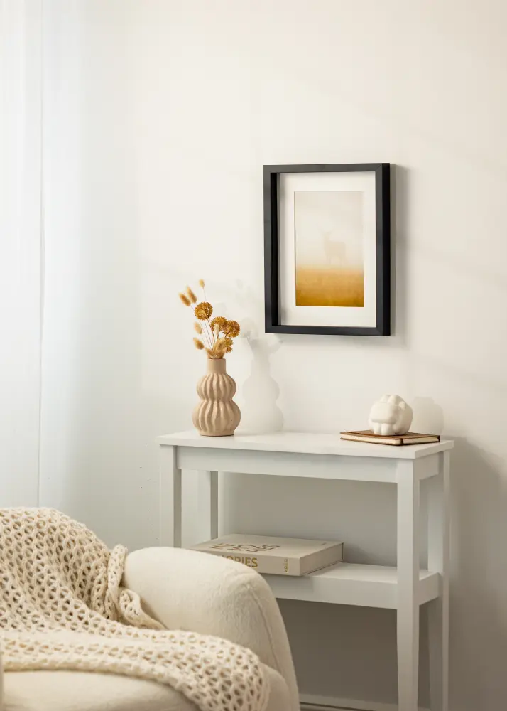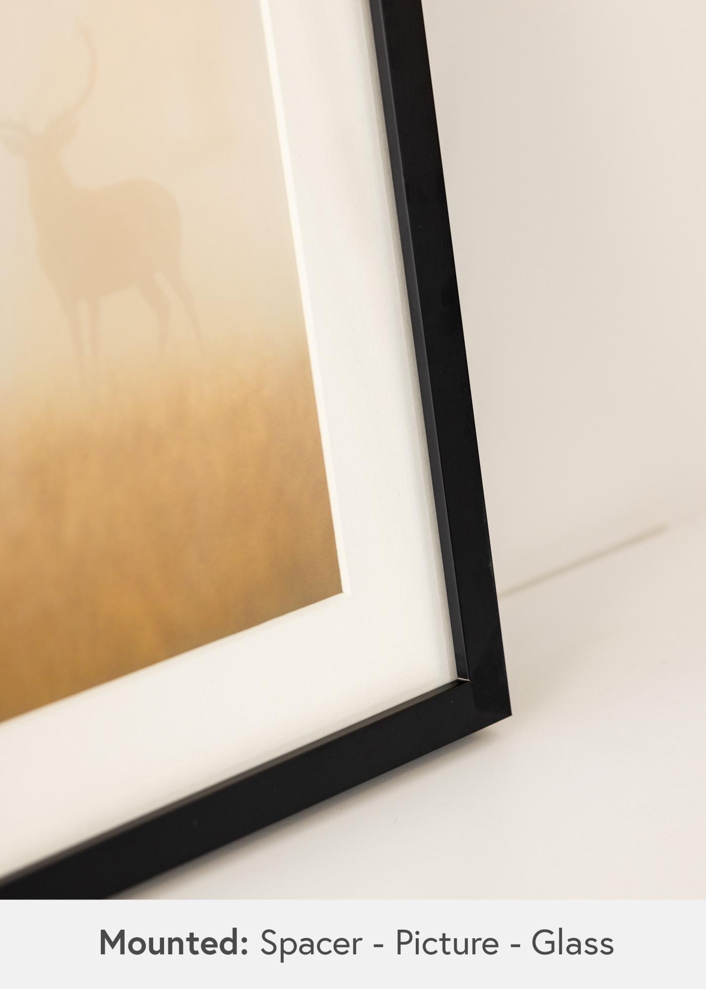 Valmistatud männist, on see pildiraam nii vastupidav kui ka kerge, mis teeb selle käsitsemise ja paigaldamise lihtsaks. Unikaalne omadus Balder Must raamiga on kaasasolev vahedetail. See detail loob vahe klaasi ja pildi vahel, mis annab sügavuse efekti ja võimaldab asetada pildi raami sees kaugemale või ujuvana klaasi ja tagumise osa vahel. See annab stiilse ja eksklusiivse raamistuse, mis tõstab motiivi tõeliselt esile.