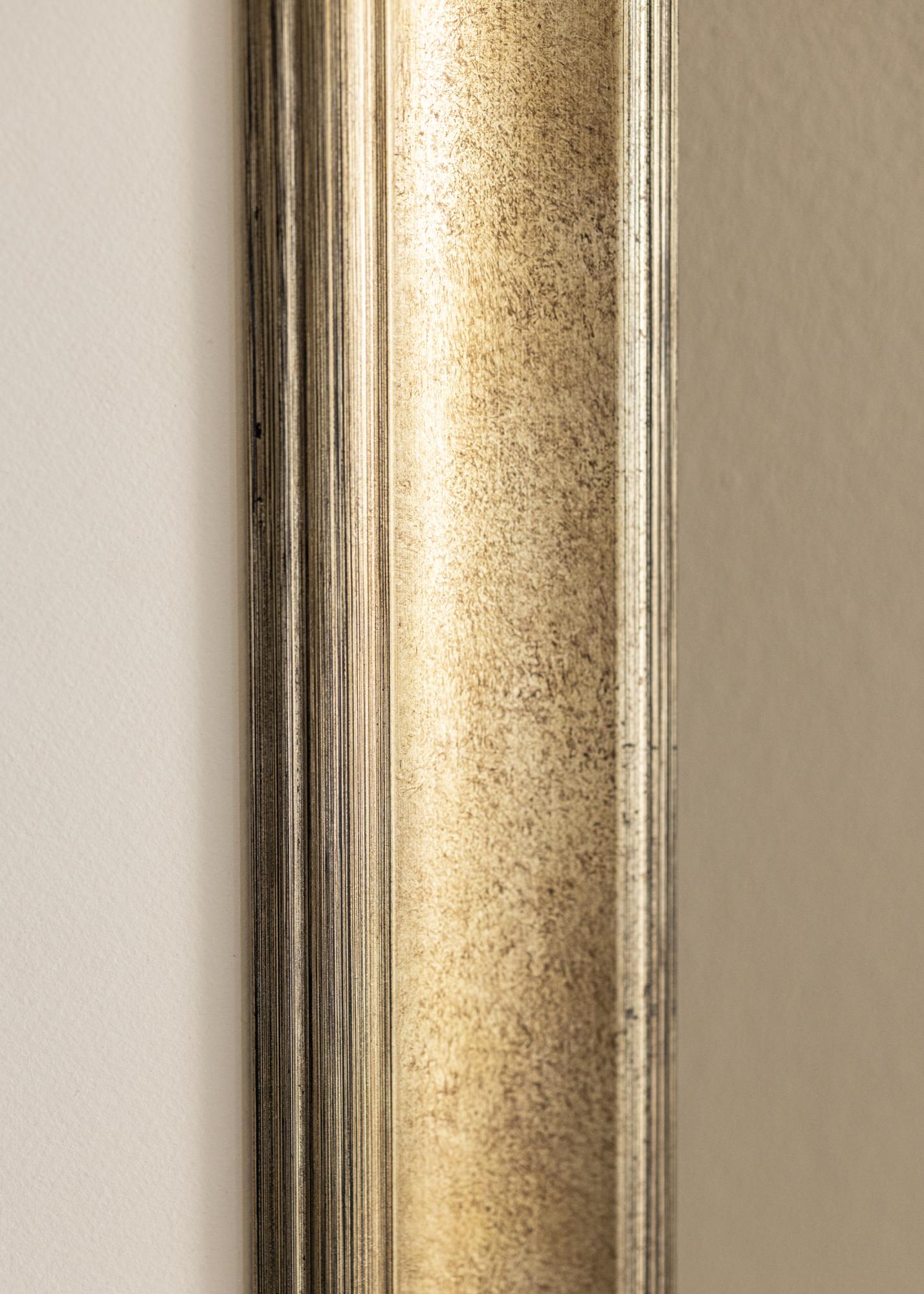 Õhukesed, lineaarsete kaunistustega ääred lisavad raami elegantsele välimusele, samas kui harjatud pinnal on peened värvimuutused, mis rõhutavad selle sügavust ja tekstuuri. Tumehõbedane toon loob klassikalise ja ajatu tunde, mis sobib enamiku sisustusstiilidega.