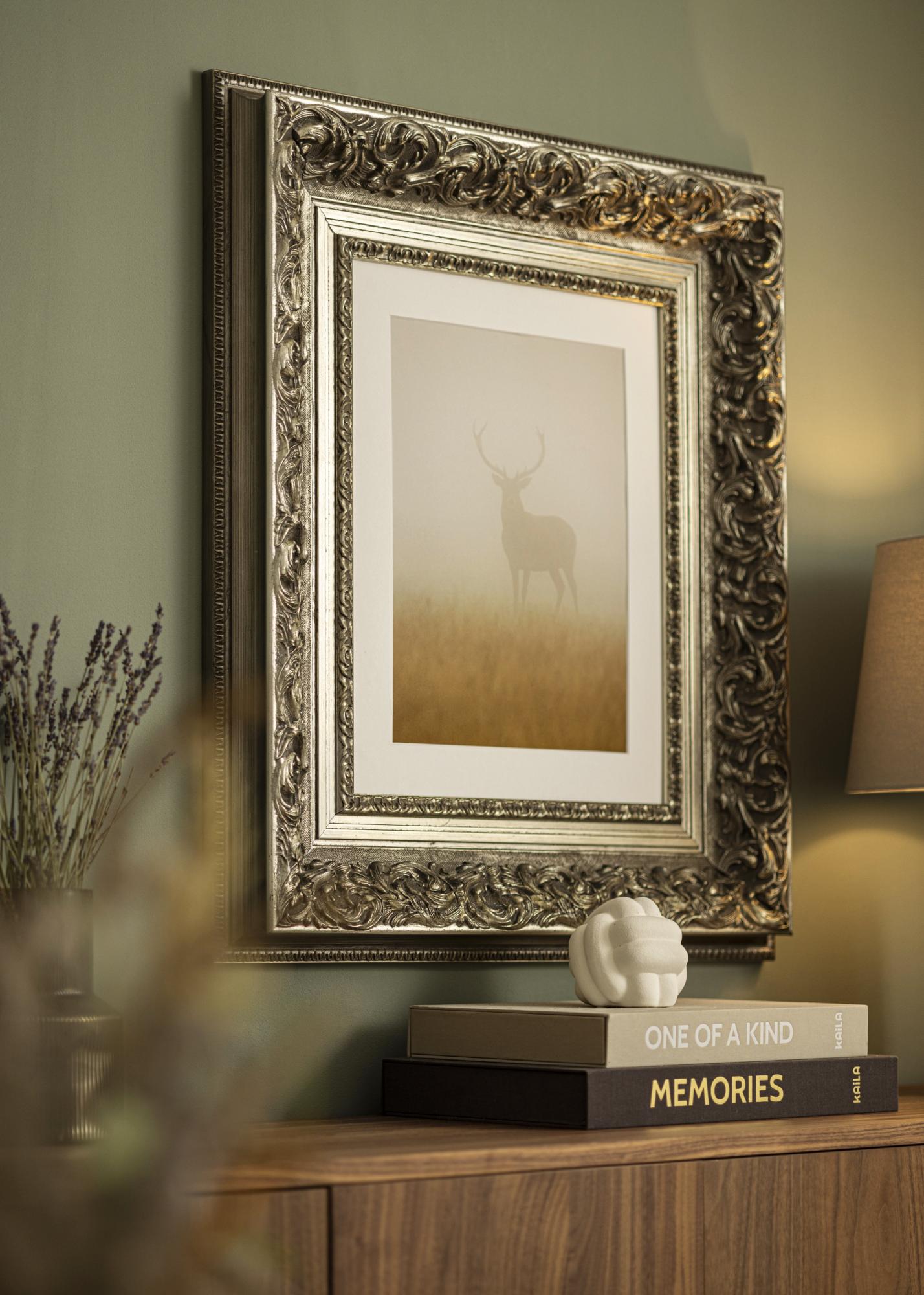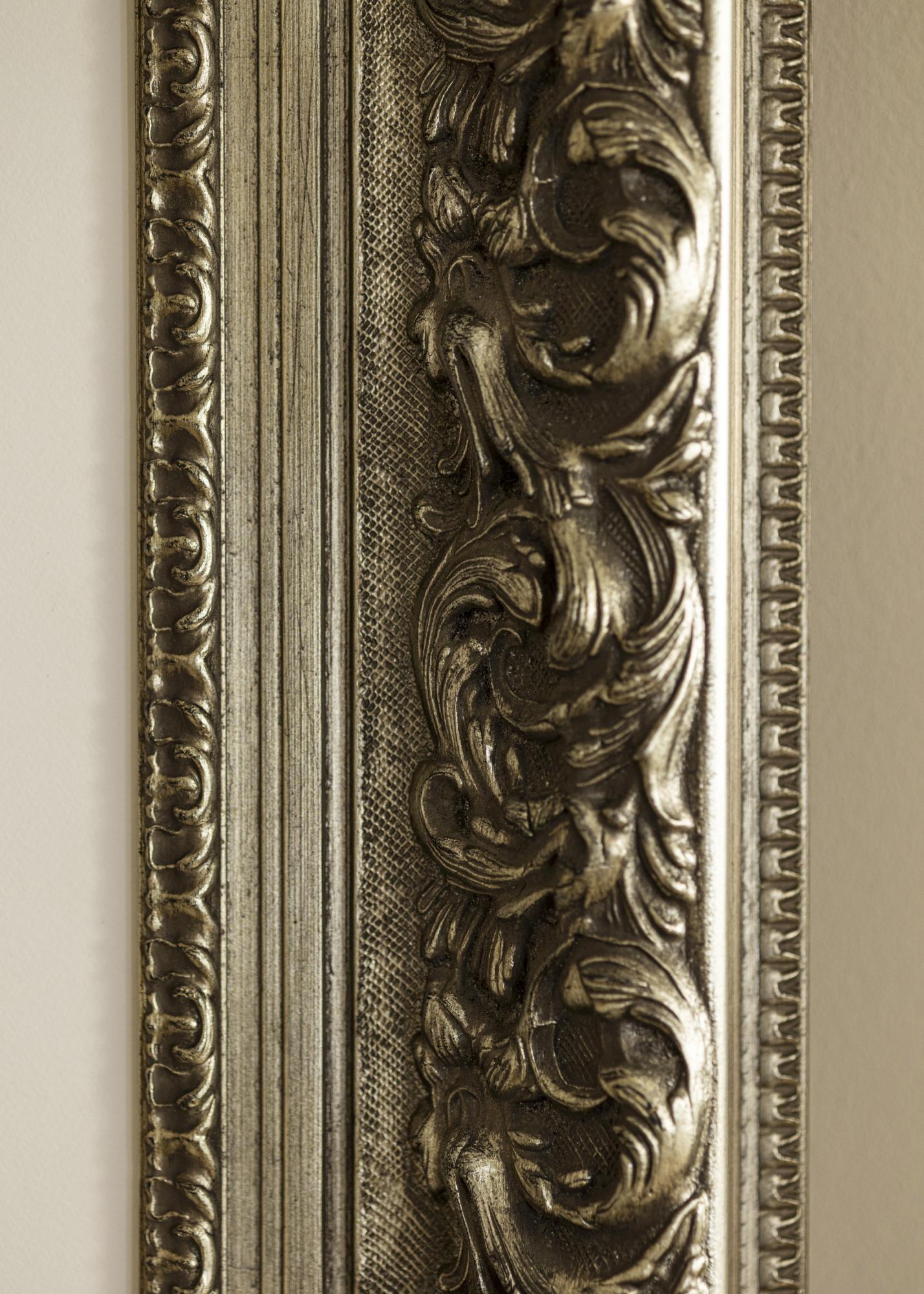 See rikkalikult ornamenditud antiikhõbe raam sisaldab keerulisi detaile ja kaunist patiinat, andes elegantsi ja ajatuse tunnet. Sügav reljeef toob esile skulptuuritud lehemustrid, muutes selle täiuslikuks valikuks klassikaliste motiivide ja raamide jaoks, mis vajavad eristuvat ja dekoratiivset pildiraami.