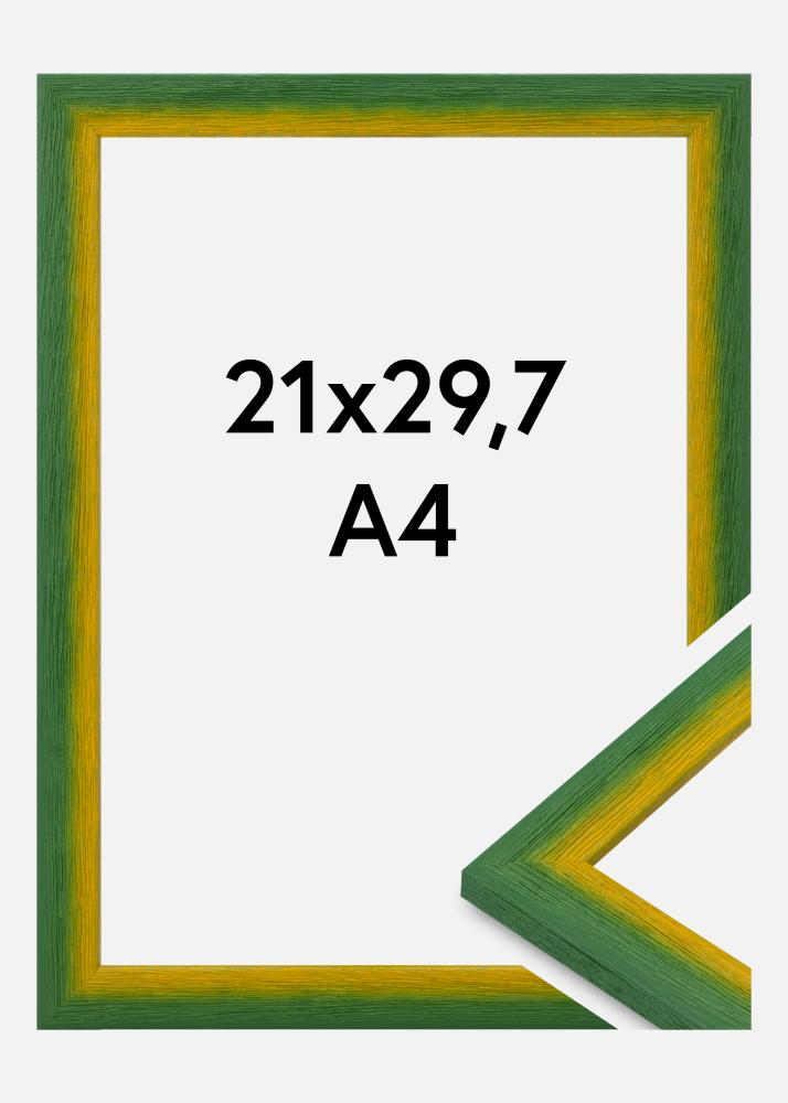 See fotor Raam suuruses 21x29,7 cm (A4) on moodsa disaini ja loodusliku ilu täiuslik kooslus. Roheline värv koos kuldkollaste toonidega toob elegantselt esile puidu loomuliku struktuuri. Kitsas profiil, mille Raamiliist on 23 mm lai ja 13 mm sügav, loob puhta ja minimalistliku ilme, mis laseb sinu motiivil särada keskpunktis.