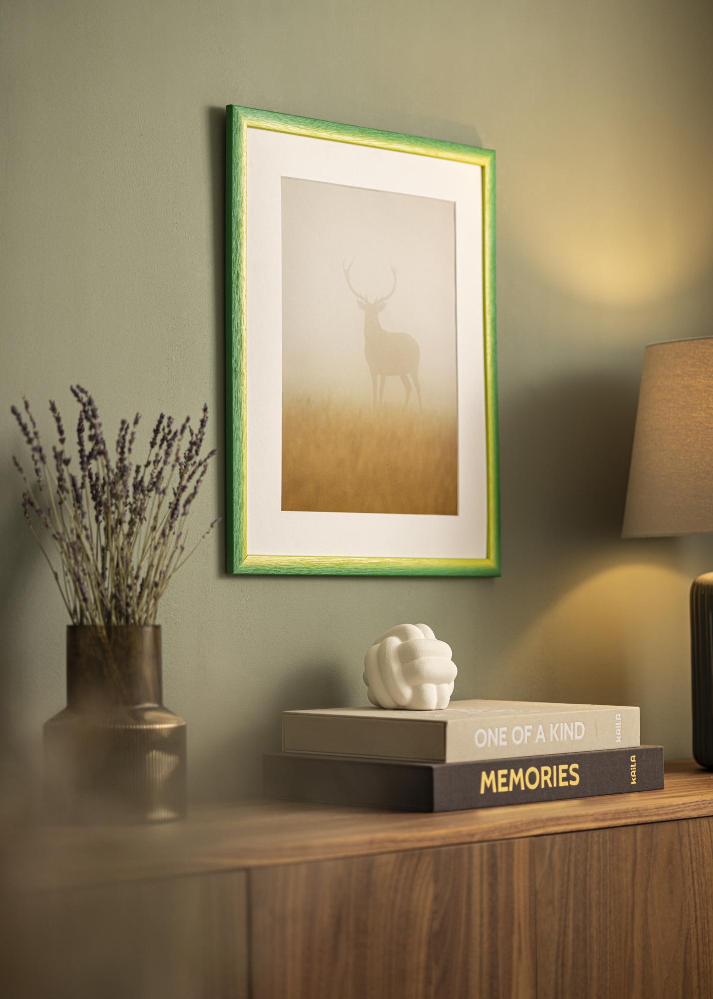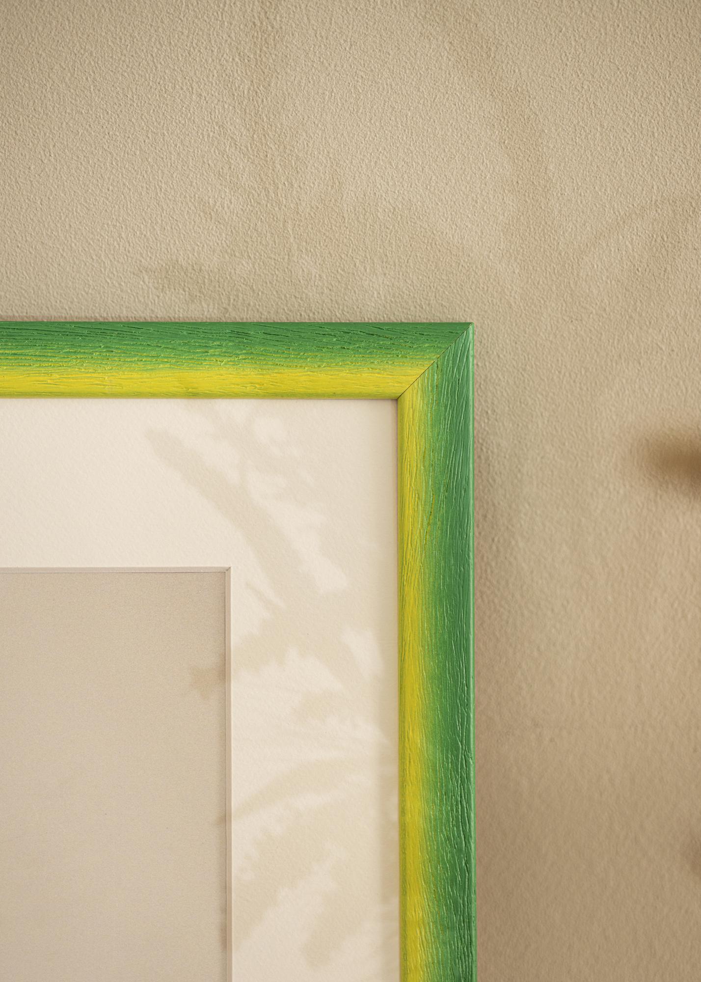 Avastage meie eritellimusel valmistatud Cornwall Roheline pildiraam, ainulaadne fotoraam, mis on valmistatud otse meie enda raamistuudios. Oma elava värvipaletiga, kus päikesekollased toonid lähevad sujuvalt üle lopsakaks roheliseks, muutub see raam kunstiteoseks iseenesest. Eriline puidustruktuur sügavate soontega annab taktiilse tunde ja käsitsi maalitud efekti, mis tõstab esile orgaanilist väljendust.