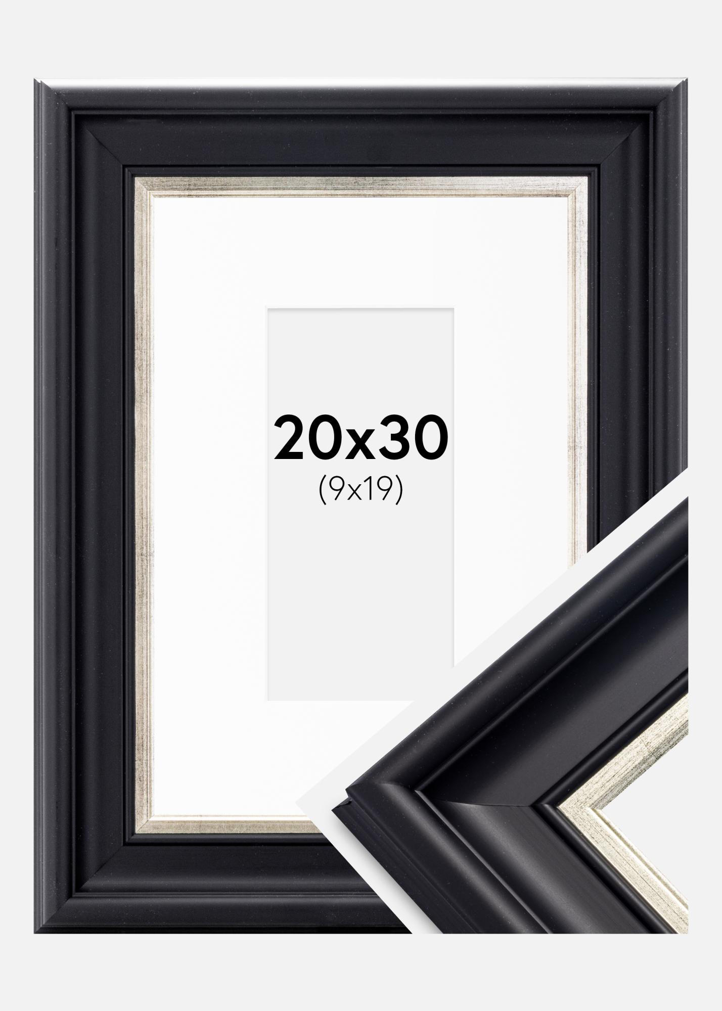 Raam Dalarna mustjas hobedane 20x30 cm - paspartuu valge 10x20 cm