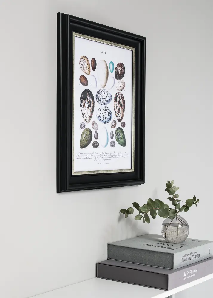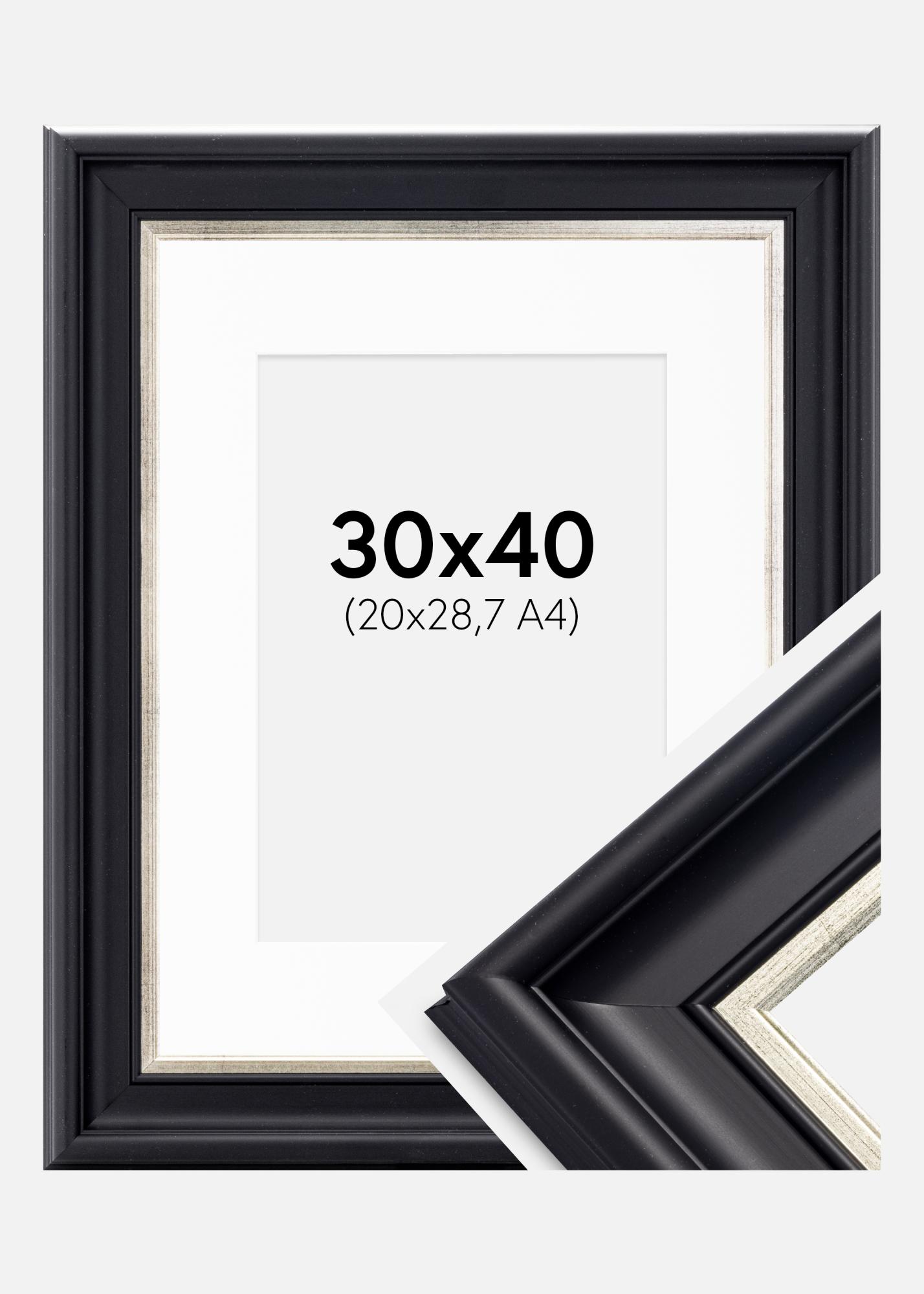 Raam Dalarna mustjas hobedane 30x40 cm - paspartuu valge 21x29,7 cm (A4)