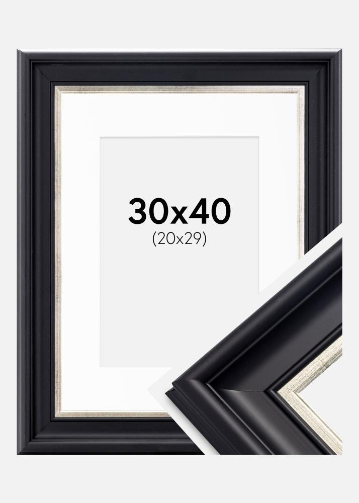 Raam Dalarna mustjas hobedane 30x40 cm - paspartuu valge 21x30 cm