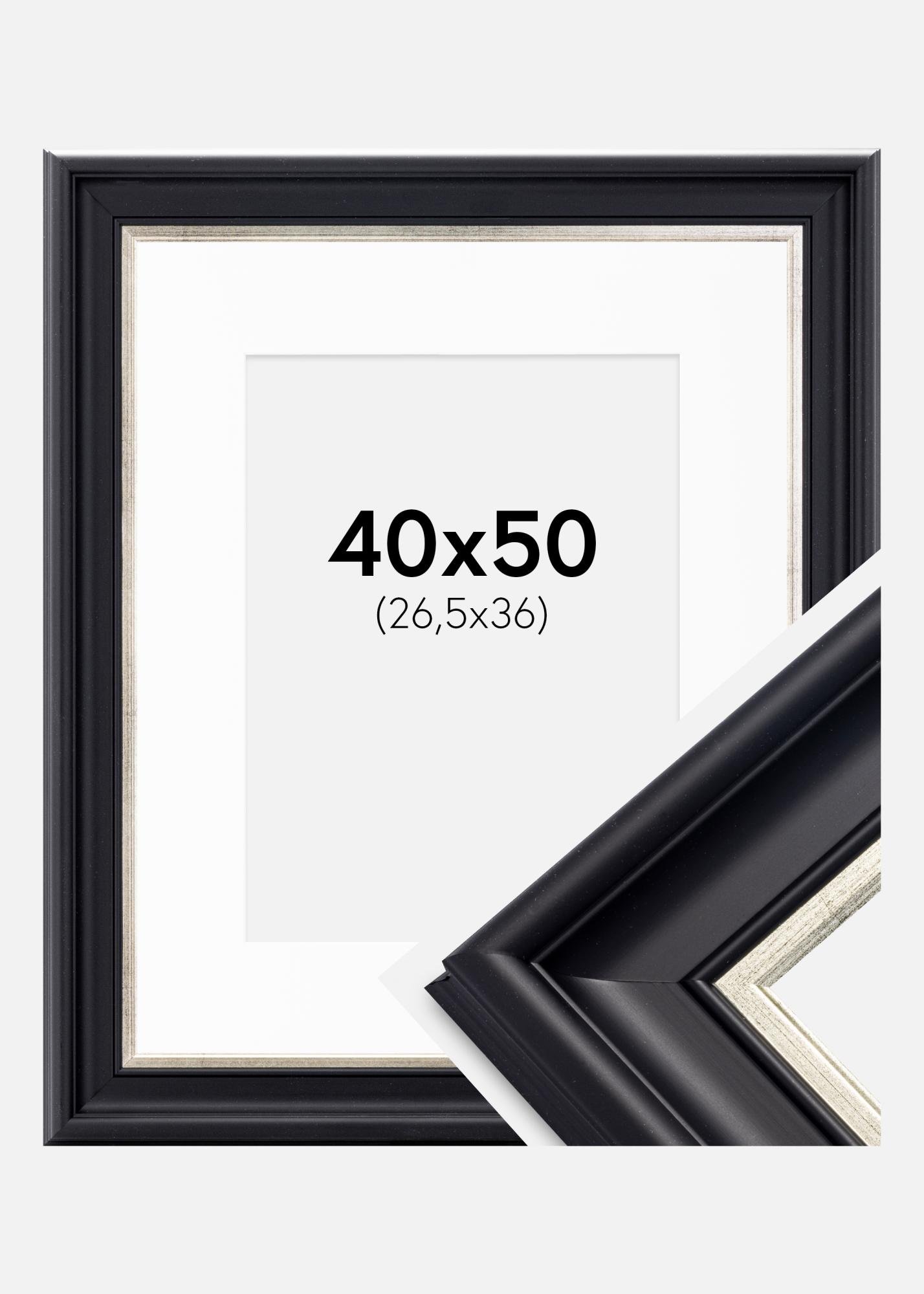Raam Dalarna mustjas hobedane 40x50 cm - paspartuu valge 27,5x37 cm