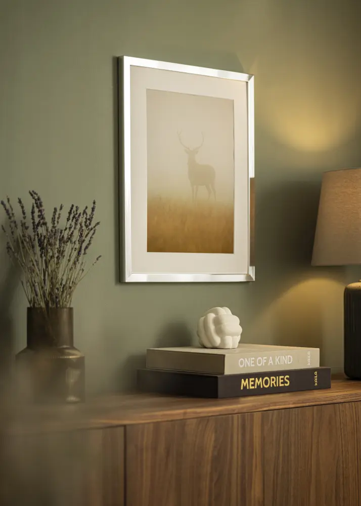 Devon Silver on eritellimusel valmistatud pildiraam, mis on valminud meie poolt täpsuse ja hoolega. Oma elegantse hõbedase viimistluse ja peegelduva pinnaga peegeldab see fotoraam valgust viisil, mis loob sinu kodus kaasaegse ja stiilse tunde. Sile metallist pind püüab kinni ümbritseva valguse ja annab sõltuvalt valguse suunast dünaamilise sära.