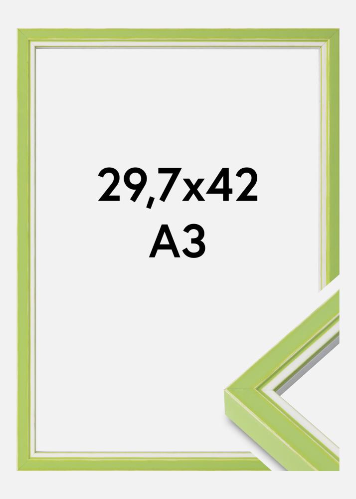 Anna oma seintele värske ja moodne puudutus meie helerohelise ja valge pildiraamiga suuruses 29,7x42 cm (A3). See stiilne fotoruum on valmistatud Hollandis ja tuleb koos 20 mm laia raamiliistuga, mis elegantselt raamib sinu pilte või kunstiteoseid.