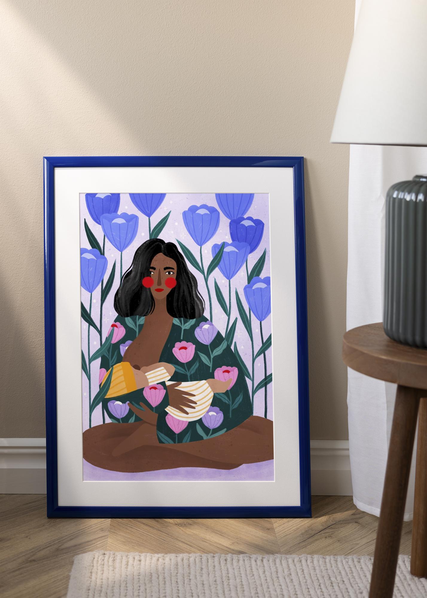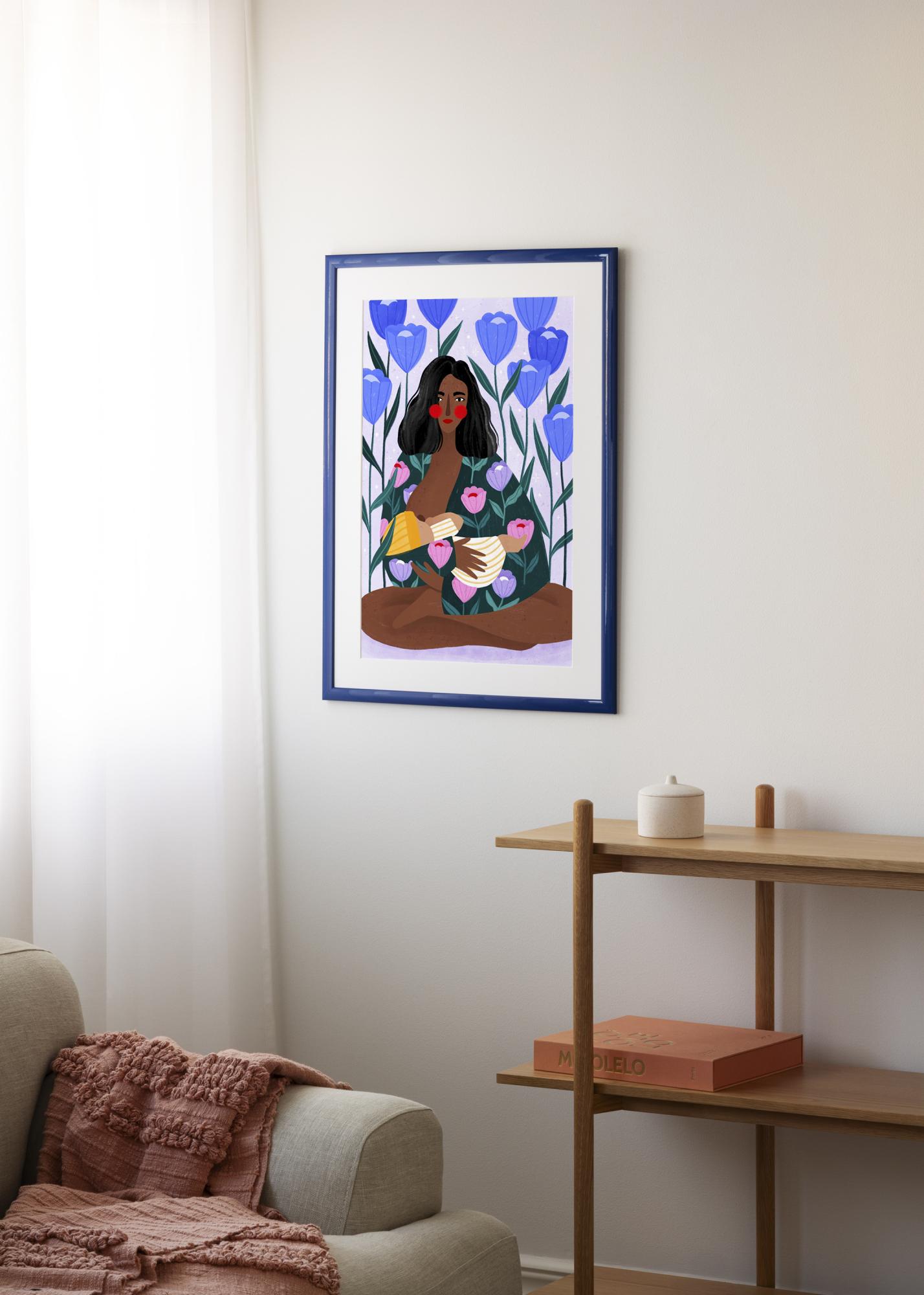 Raam on valmistatud puidust, sellel on 23 mm laiune raamiliist ja sügavus 13 mm. Õhuke profiil ja teravad nurgad loovad minimalistliku ilme, mis laseb motiivil tõeliselt esile tõusta. Küllastunud sinine värv lisab ruumile harmooniat ja sobib hästi kaasaegsesse, skandinaavialikku või puhtasse interjööri.
