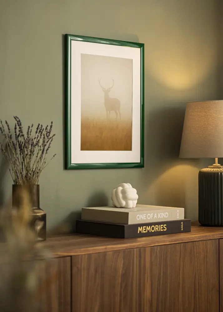 Avastage meie eritellimusel valmistatud pildiraam Dorset Roheline, mis on ideaalne lahendus teie piltidele isikliku puute andmiseks. Selle sügava rohelise värvi ja kõrgläikelise viimistlusega pakub see pildiraam elegantset ja elavat pinda, mis tõesti köidab pilku. Lakitud pind tugevdab värvi intensiivsust ja peegeldab valgust dünaamilisel viisil, andes teie kodule kaasaegse ja stiilse tunde.