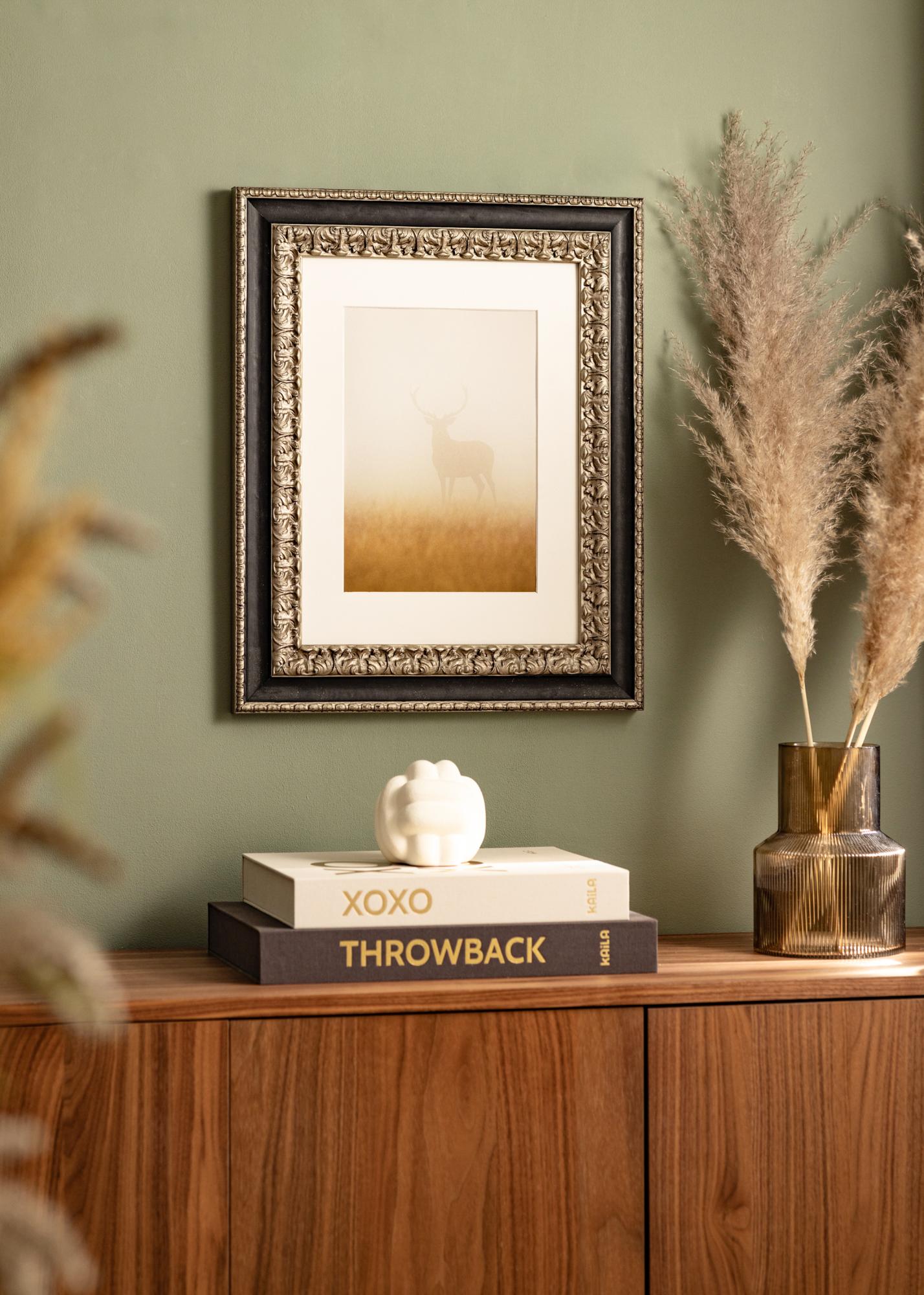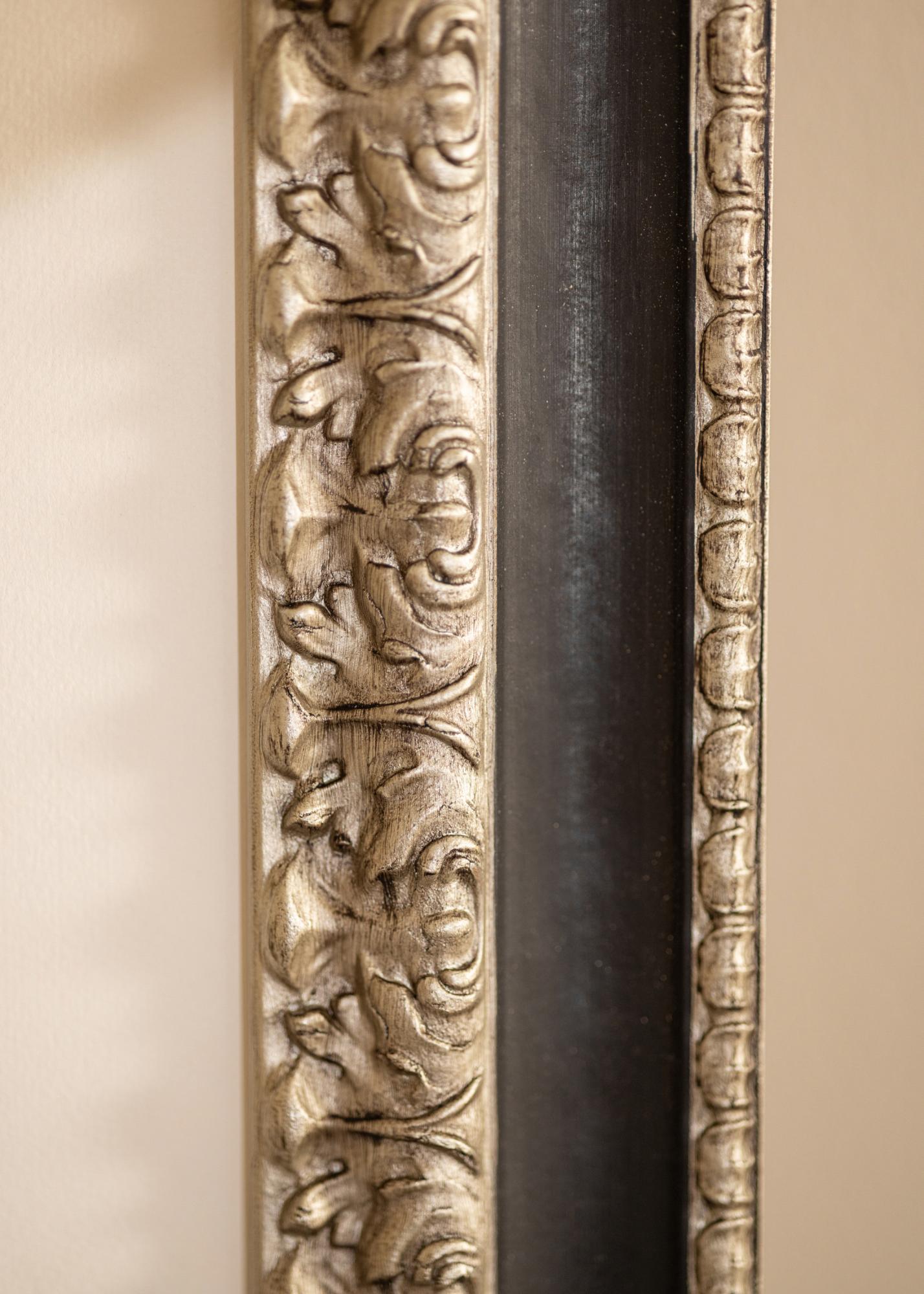 "Drottningholm Hõbe" on kaunis retroraam Itaaliast, mis on valmistatud sõrmjätkatud männipuidust ja käsitsi maalitud. Raamil on rikkalikult kaunistatud hõbeprofiil laia musta äärega, mis annab raami elegantse ilme. Ideaalne kõigi retroliku stiiliga raamide jaoks.