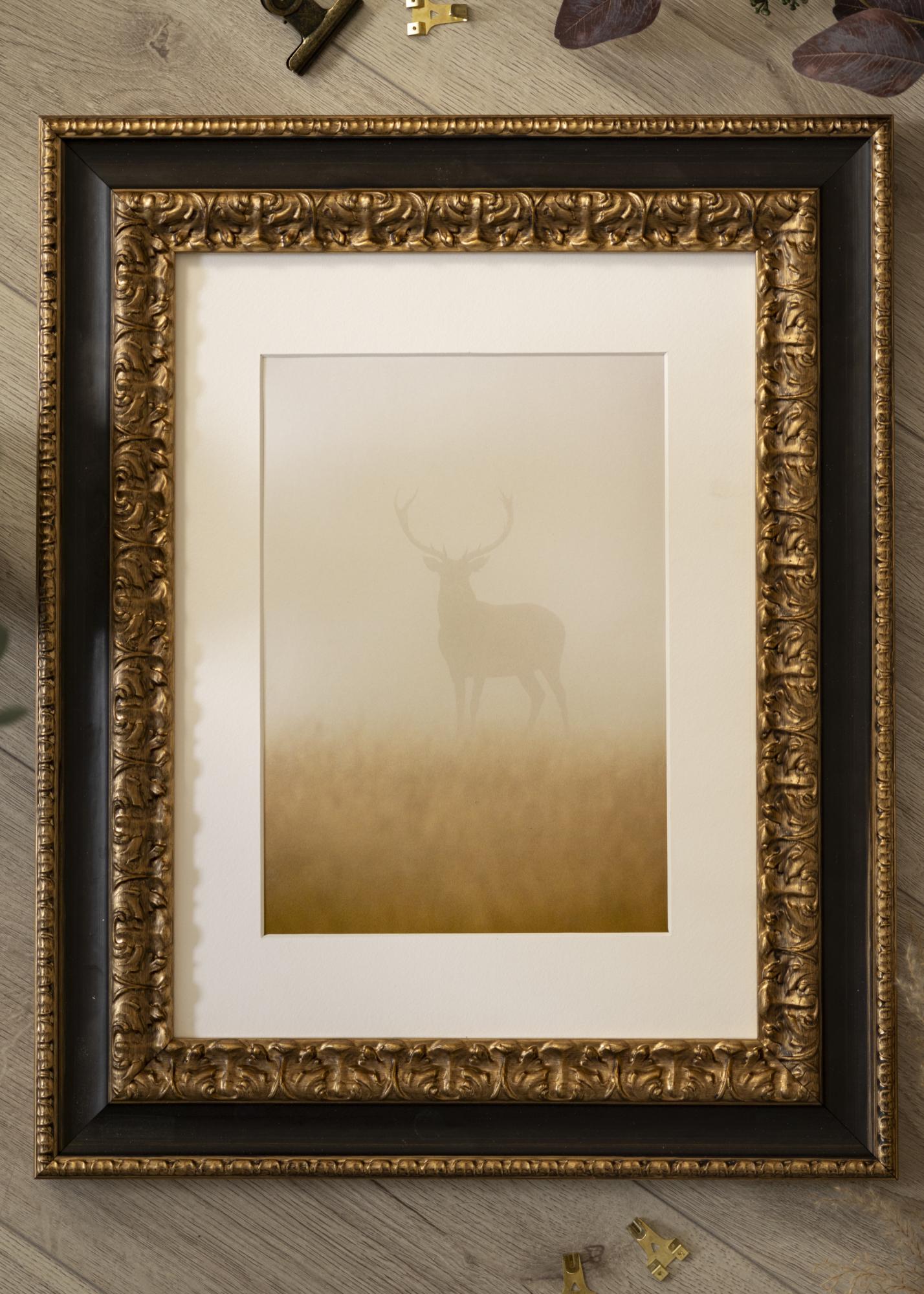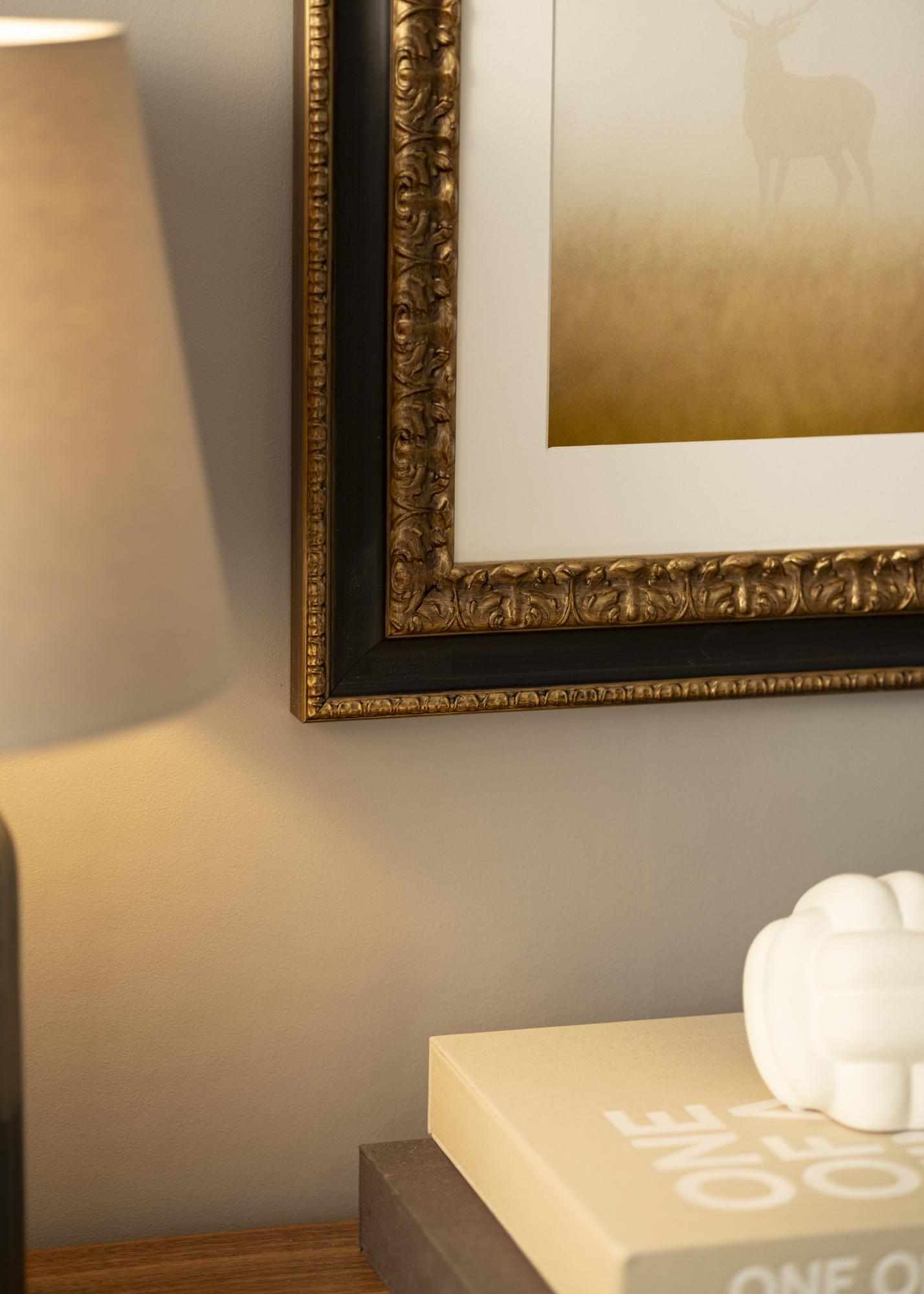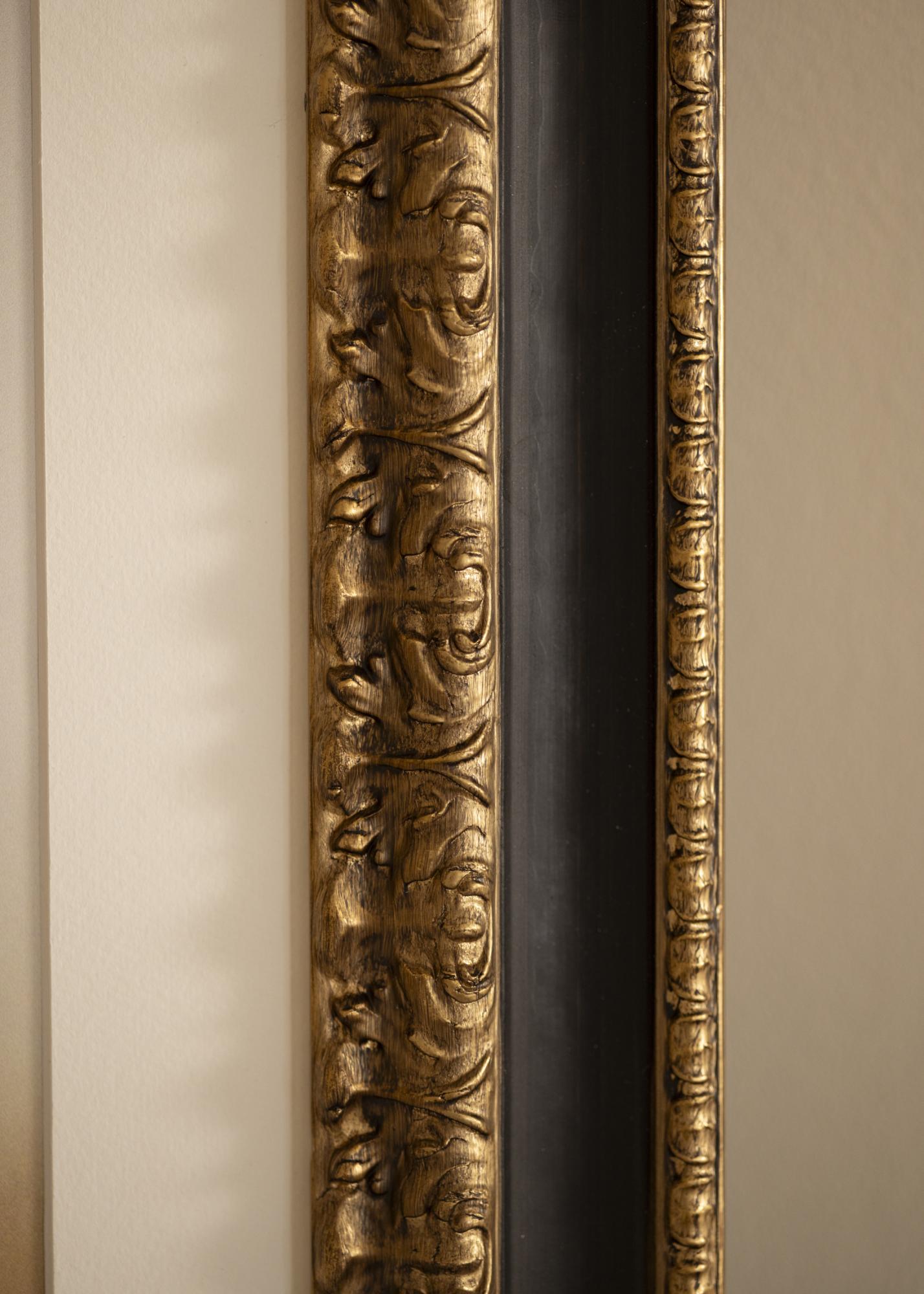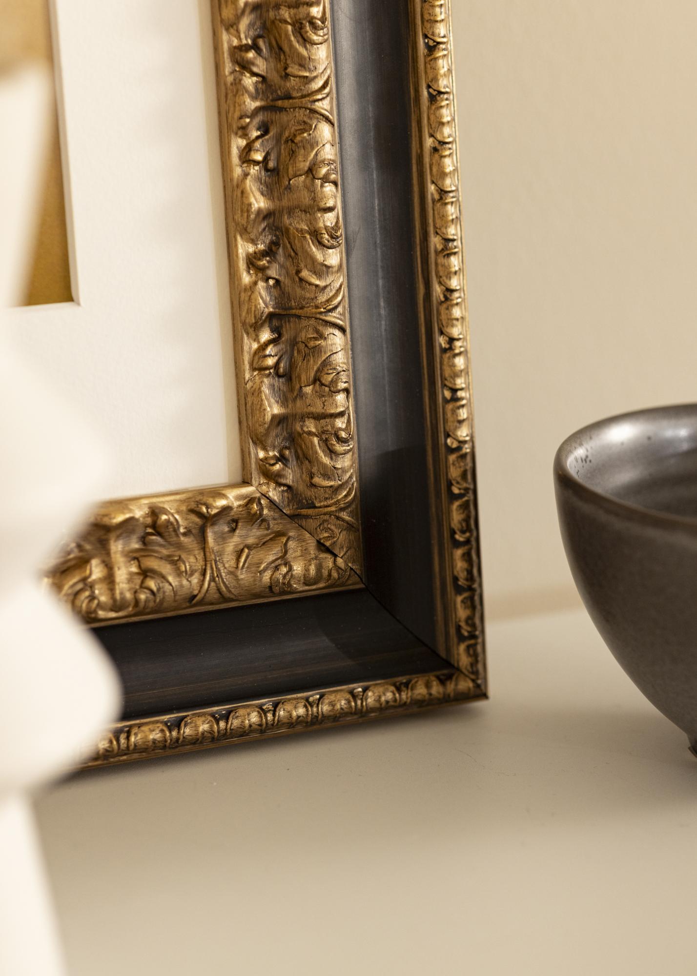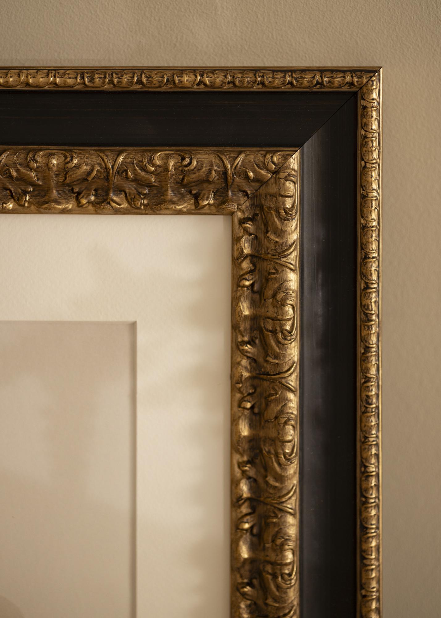 "Drottningholm Guld" on kaunis retrostiilis raam Itaaliast, mis on valmistatud ningerveddist ja on käsitsi värvitud. Raamil on rikkalikult dekoreeritud kuldprofiil, millel on lai must serv, mis annab raami elegantsuse. Ideaalne kõikvõimalikeks raamimistöödeks retrostiilis.
