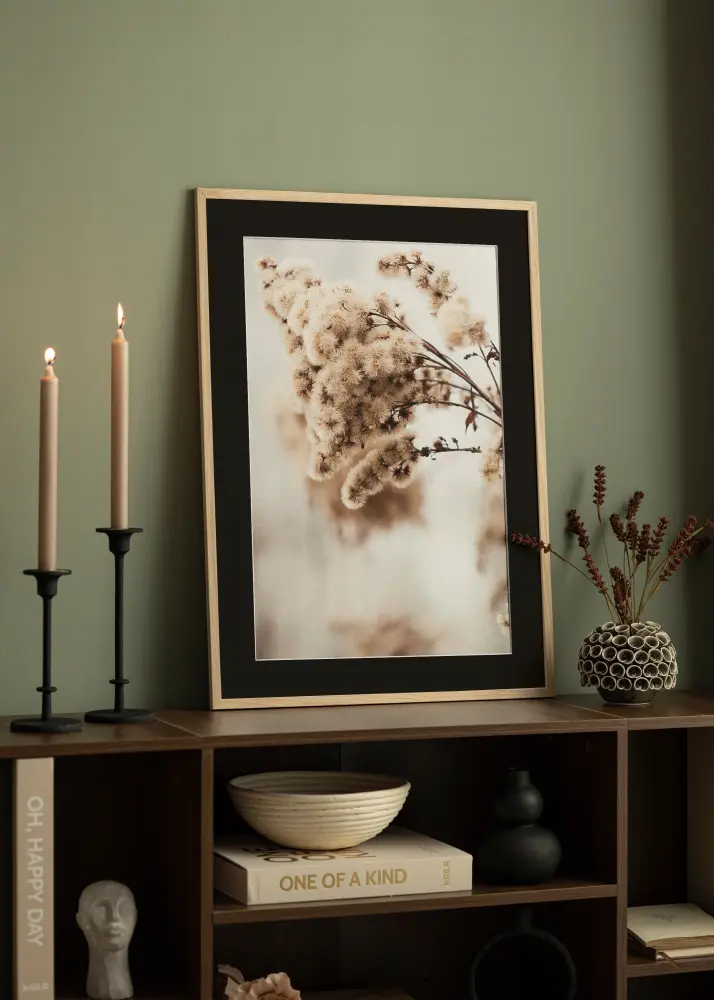 Kogege täiuslikku stiili ja elegantsi kombinatsiooni meie eksklusiivse passepartout'iga raamiga. Must passepartout annab teie pildile sügava ja dramaatilise raami suuruses 18x57 cm, samal ajal kui raami naturaalne puidu värv lisab teie koju sooja ja kutsuva tunde.