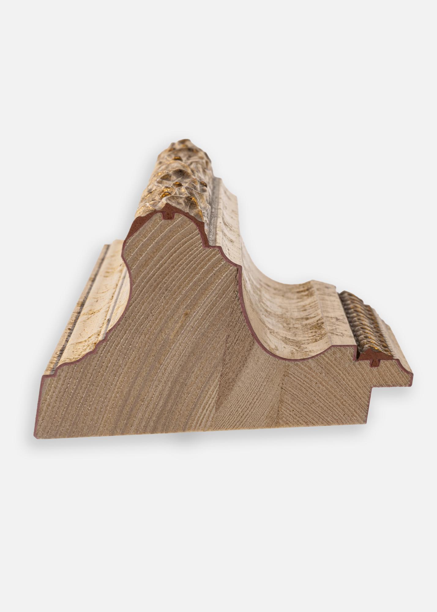 102 mm lai profiil annab raamile muljetavaldava kohaloleku, samal ajal kui selle sügavus 56 mm loob tugeva ja stabiilse raamimise. Väikesed pärlikujulised ornamendid siseserva ääres annavad peene, klassikalise aktsendi, mis tõstab üldmuljet. Välimist äärt kaunistab laineline lehemuster, mis lisab raamile väljapeetud ja ajatuse iseloomu.