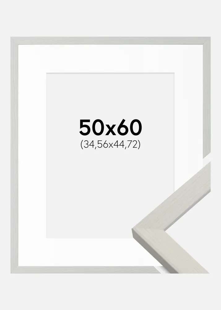 Kogege meie valge raami elegantset lihtsust, mis on varustatud valge passepartuuga, et esile tõsta teie pilti suuruses 14x18 tolli. Puhtast valgest värvist ja matist viimistlusest õhkub rafineeritud puudutust teie valitud kunstiteosele või fotole. Raami siledad jooned ja 20 mm laius loovad peene raamimise, mis laseb teie motiivil keskpunkti jääda.