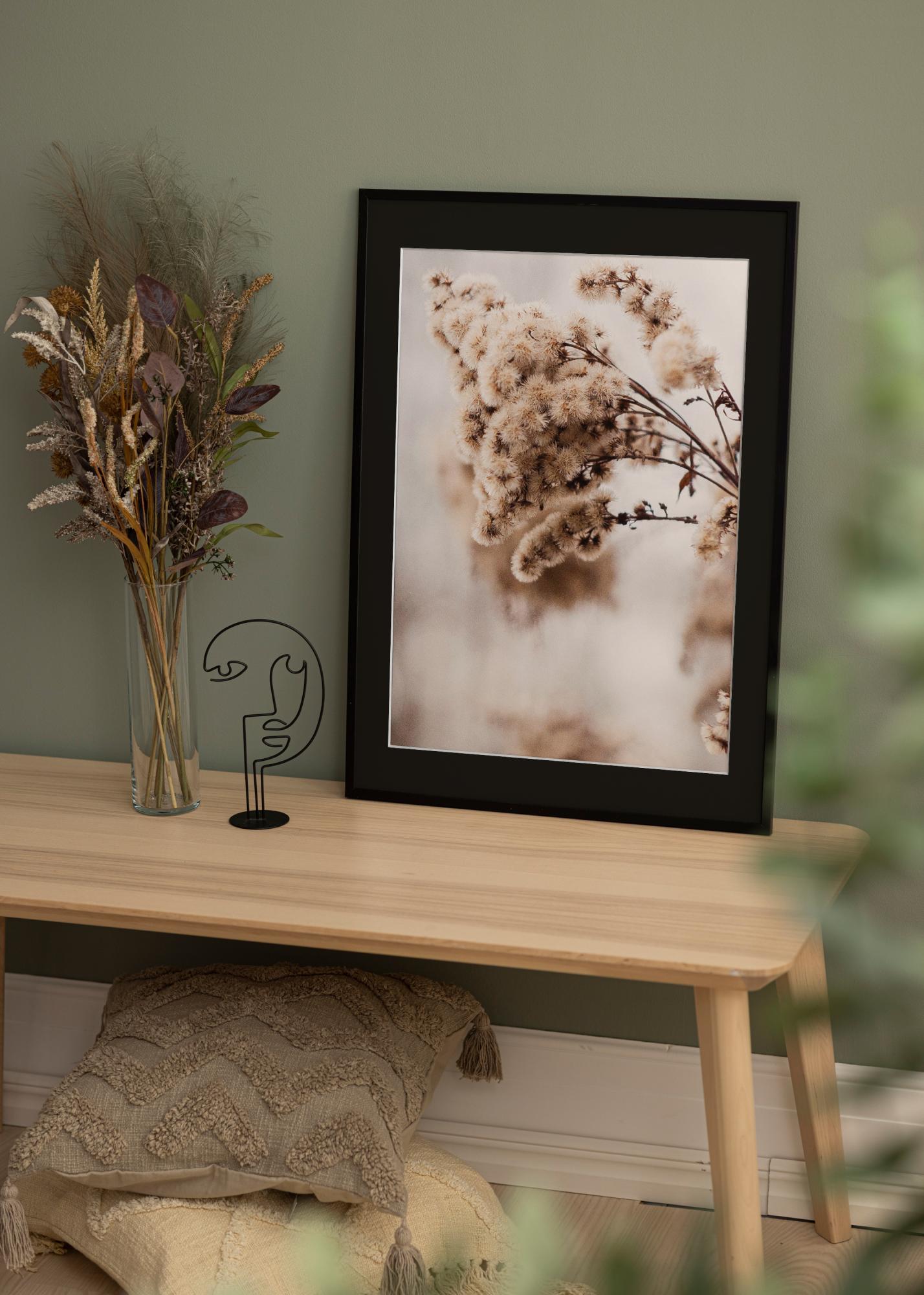 Must passepartout suurendab teie pildi kontrasti ja sügavust, andes sellele professionaalse ja tervikliku esitluse. Komplektis olevate metallkonksude abil on raami lihtne riputada nii horisontaalselt kui ka vertikaalselt, pakkudes teile paindlikkust kohandada vastavalt oma ruumile ja stiilile.
