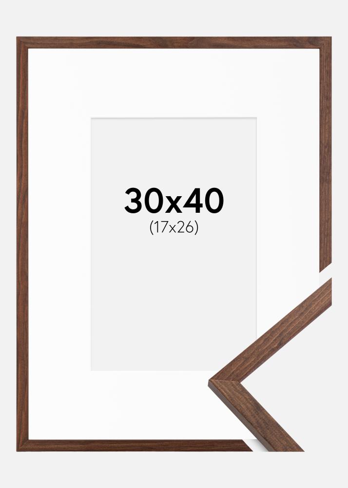 Kogege oma piltide ilu elegantsuse puudutusega tänu meie pähklipuust mustriga raamile ja valgele paspartuule. Täiuslik kombinatsioon, et esile tõsta teie 18x27 cm suurust fotot või kunstiteost. Raami peenike laius 13 mm ja sügavus 12 mm annab teie seinale stiilse ja kaasaegse tunde.