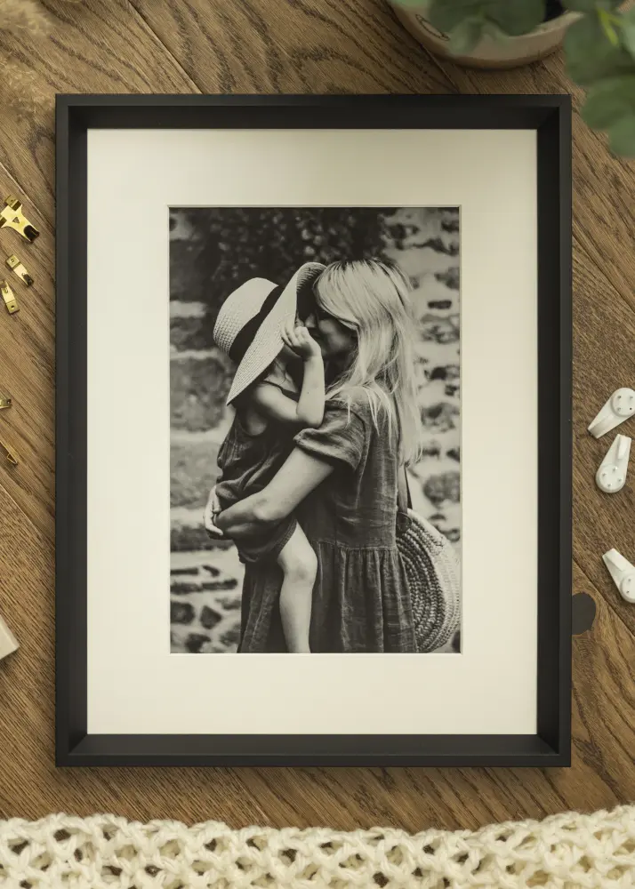 Globe Akrüülklaas Must on puitraam stiilses mustas värvitoonis ja kaasaegse profiiliga, mis on disainitud ja valmistatud Rootsis. Raami liist on 20 mm lai ja sellel on 45° kaldega serv motiivi suunas, mis loob väga elegantse mulje. Neutraalne läikiv must värv teeb sellest raamist ideaalse valiku, olenemata sellest, kas plaanite raamida mustvalgeid või värvilisi motiive. See pildiraam on lisaks varustatud akrüülklaasiga, mis on kerge ja purunematu alternatiiv päris klaasile.