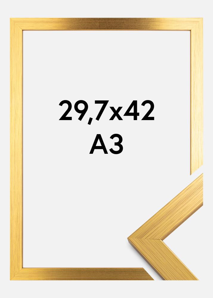 Avasta elegantne ja stiilne 29,7x42 cm (A3) kuldne raam, mis on ideaalne teie A3-formaatide kunstiteoste ja fotode raamimiseks. Selle klassikalise kuldse tooniga fotoraam annab iga pildiga, mida see hoiab, luksusliku tunde. Valmistatud Rootsis, ühendab see raam traditsioonilist käsitööd kaasaegse disainiga.