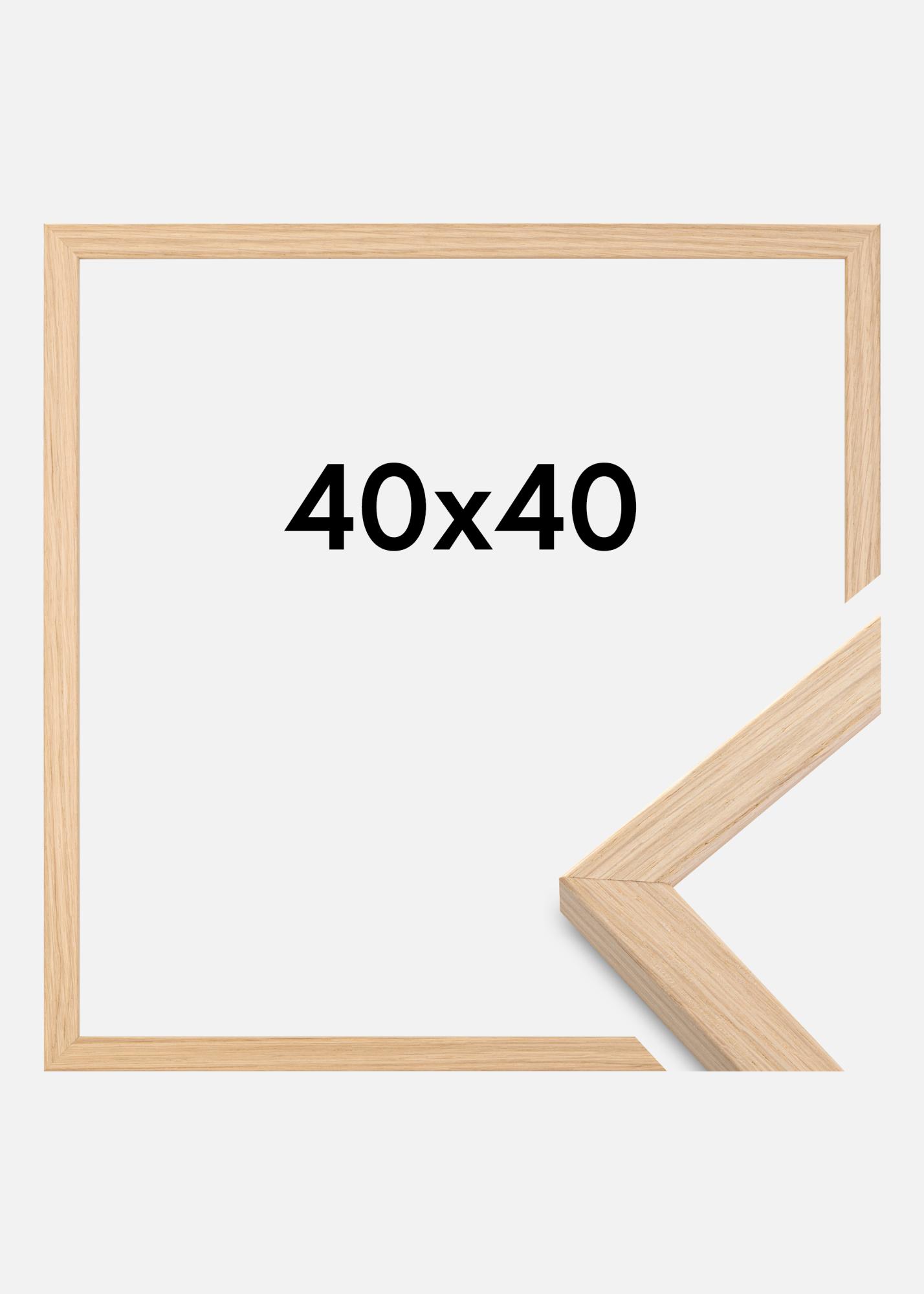 Grimsåker Raam Tamm 22A 40x40 cm sisemõõtmetega 40x40 cm, samal ajal kui liist mõõdab 1,7x2,25 cm.