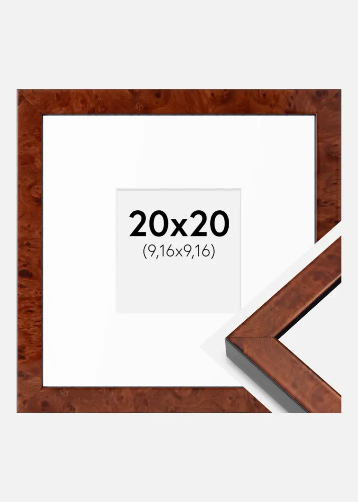 Raam Hermes pähkel 20x20 cm - paspartuu valge 4x4 tolli