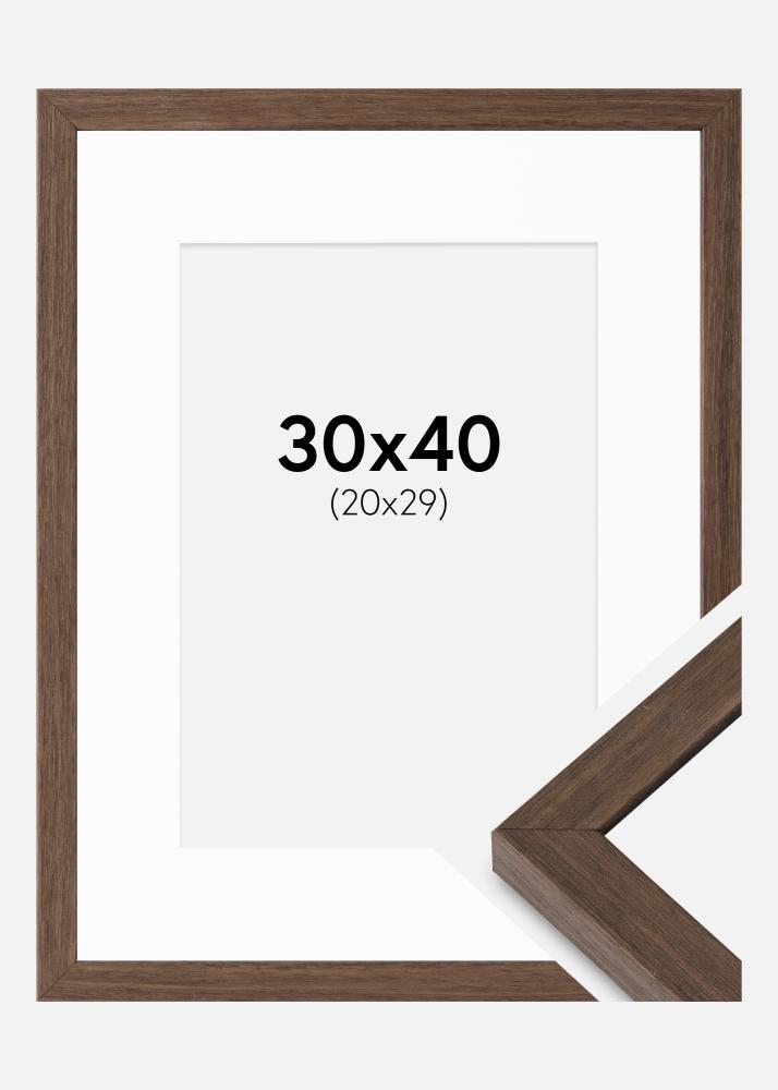 Raam Hermes pähkel 30x40 cm - paspartuu Valge 21x30 cm