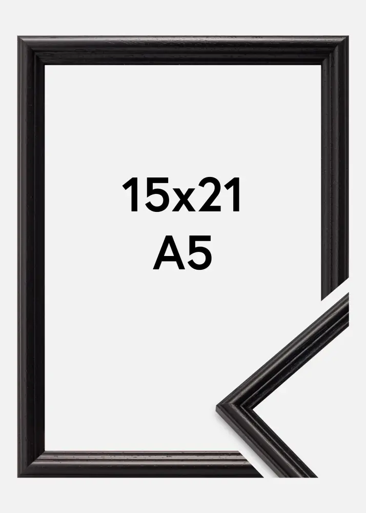 Avastage meie musta värvi fotoraami elegants ja funktsionaalsus suuruses 15x21 cm (A5), mis on ideaalne raam teie meeldejäävate hetkede jäädvustamiseks. See pildiraam on valmistatud vastupidavast ajospuidust ning sellel on maalitud pind, mis annab sellele sofistikeeritud ja mati välimuse. Oma diskreetse 15 mm laiuse ja 14 mm sügavusega täiendab raam teie fotot, ilma et see üle võtaks.
