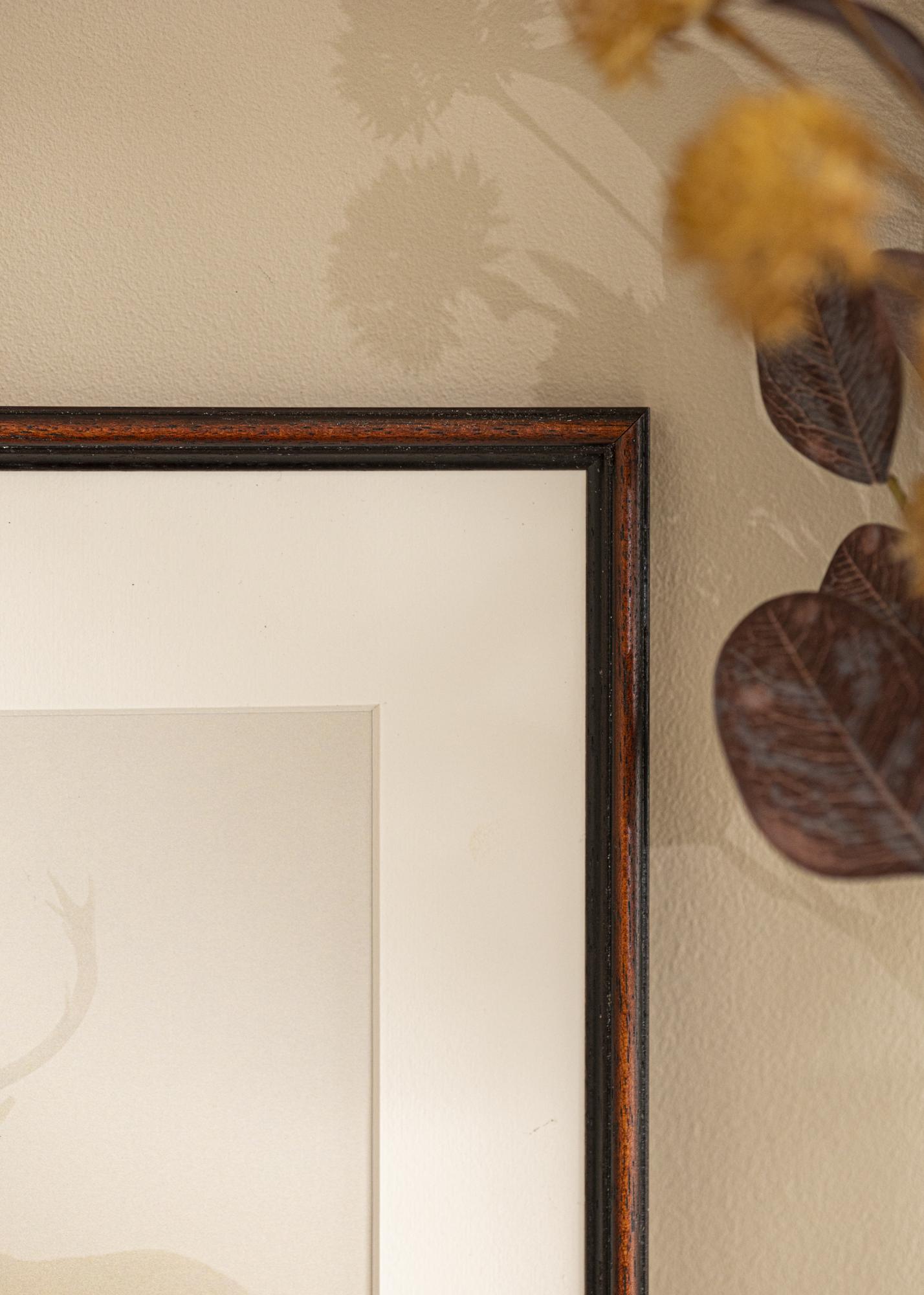 Valmistatud Rootsis ayos-puidust, ühendab see raam vastupidavuse ja stiili. Sellel on matt pind, mis täiendab sooja pähklimustrit ja annab rafineeritud mulje. Raamilista laius on 15 mm ja sügavus 14 mm, andes sinu raamitud pildile vaoshoitud, kuid siiski kohaloleva tunde.