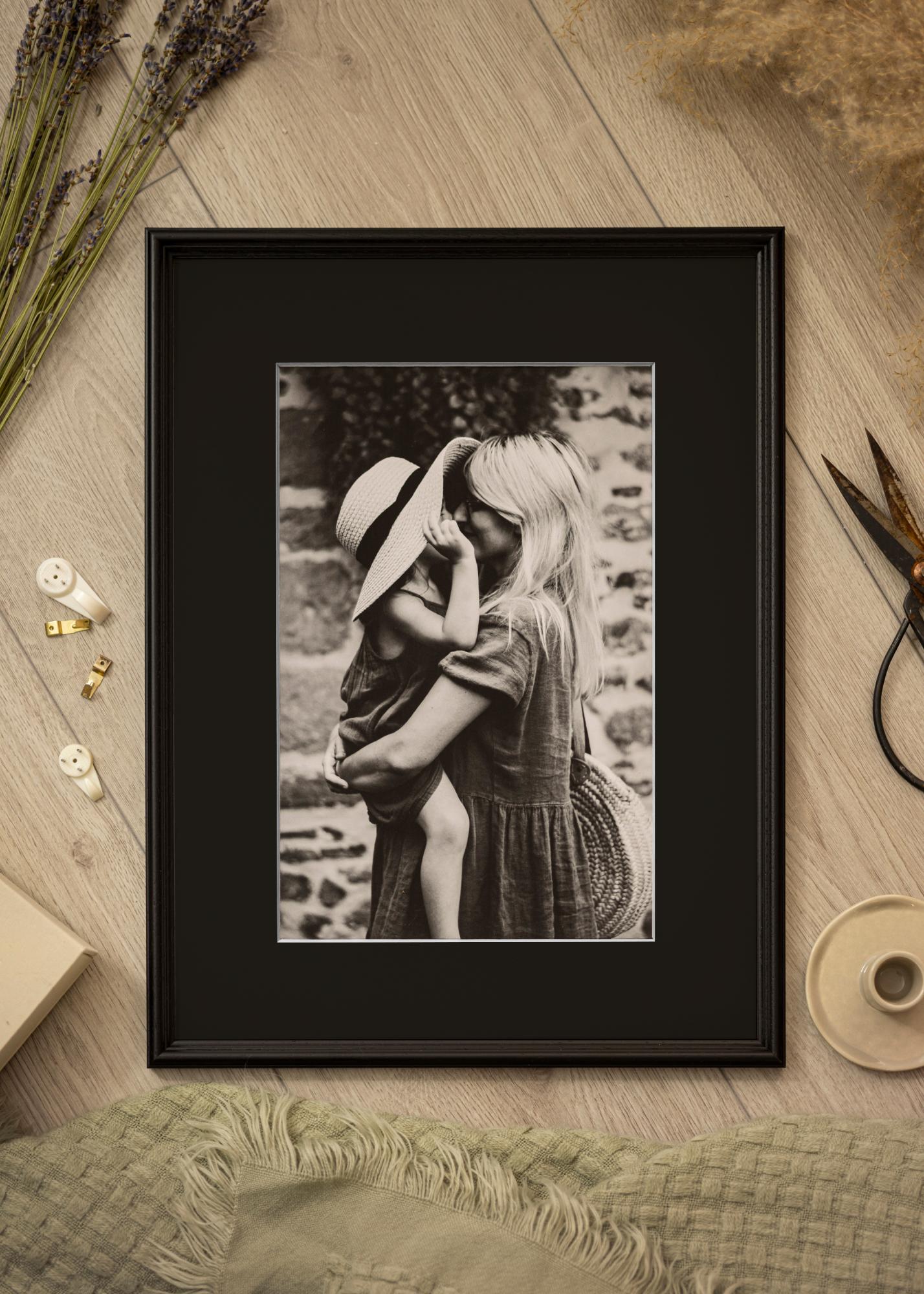 Raam on matmust ja tuleb koos sobiva musta paspartuuga, mis tugevdab kontrasti ja suunab vaataja tähelepanu pildile. Lisaks on raam varustatud praktiliste metallist riputitega, mis võimaldavad selle lihtsat ülesriputamist nii horisontaalses kui ka vertikaalses formaadis.