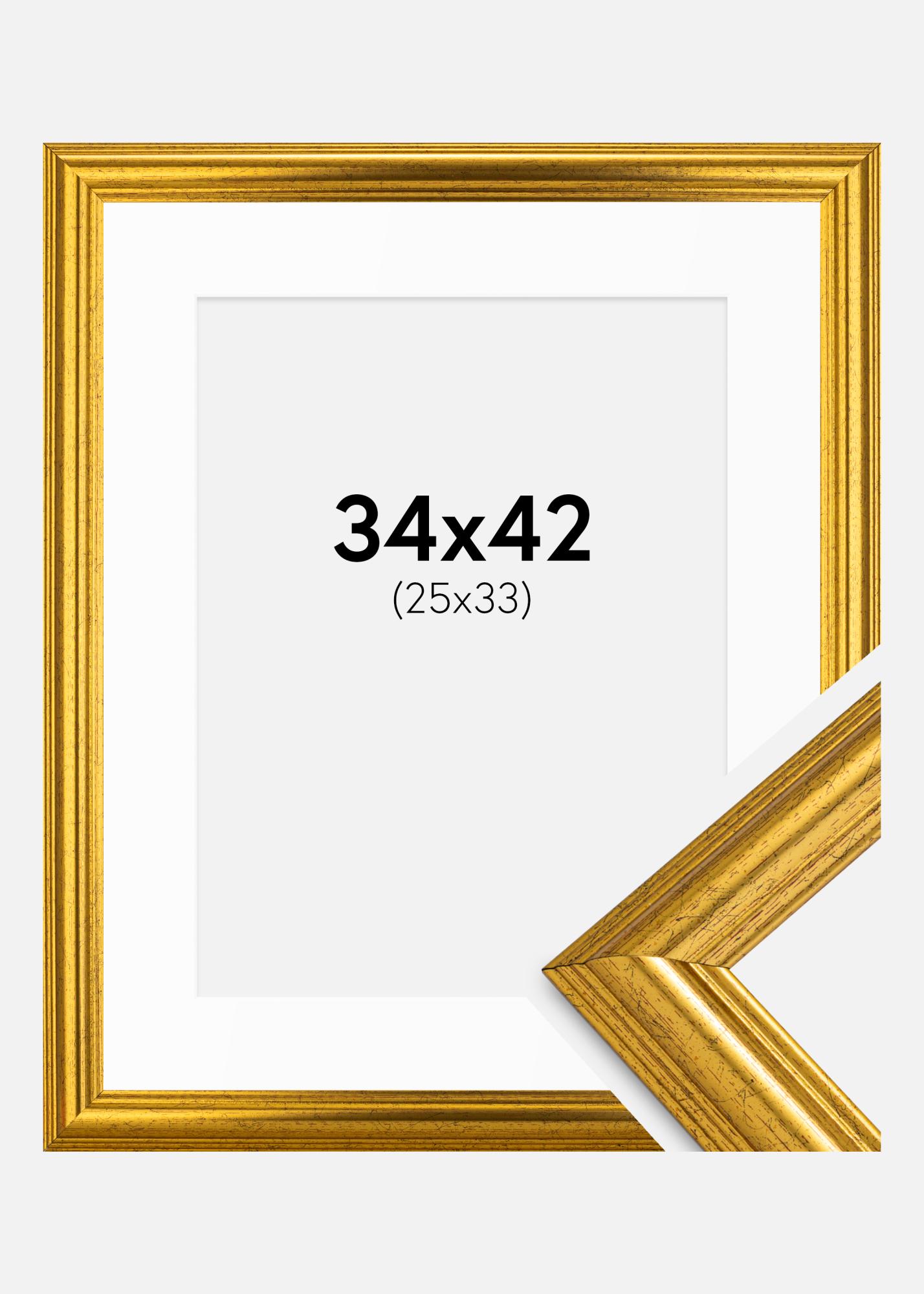 Muutke oma pildid kunstiteosteks meie elegantse kuldse raamiga, mida täiendab valge passepartout. See raam on loodud sobima 26x34 cm suuruste piltidega ning pakub rafineeritud raamimist, mis tõstab motiivi stiilselt esile.