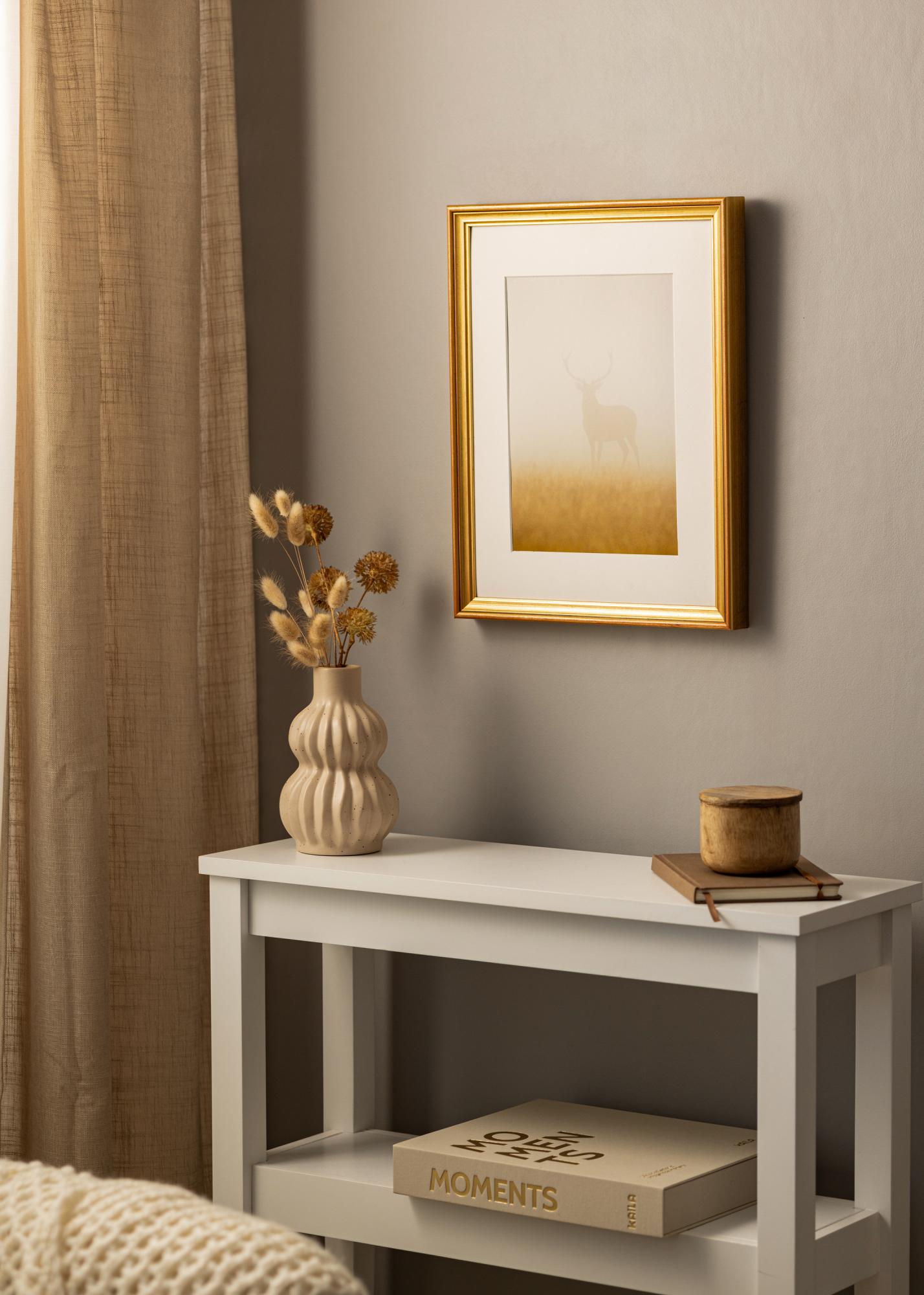Raam Loki Kuld on elegantne ja klassikaline pildiraam, mis annab teie kunstiteostele ja fotodele rafineeritud raamistuse. Oma saleda profiili ja peenelt patineeritud detailidega pakub see kuldne raam ajatut iseloomu, mis sobib ideaalselt nii kaasaegsesse kui ka traditsioonilisse keskkonda. Kuldne pind on kergelt antiikne, väikeste tumedate detailidega, mis tugevdab selle elegantset välimust ja loob sügavuse ja ajaloo tunde.