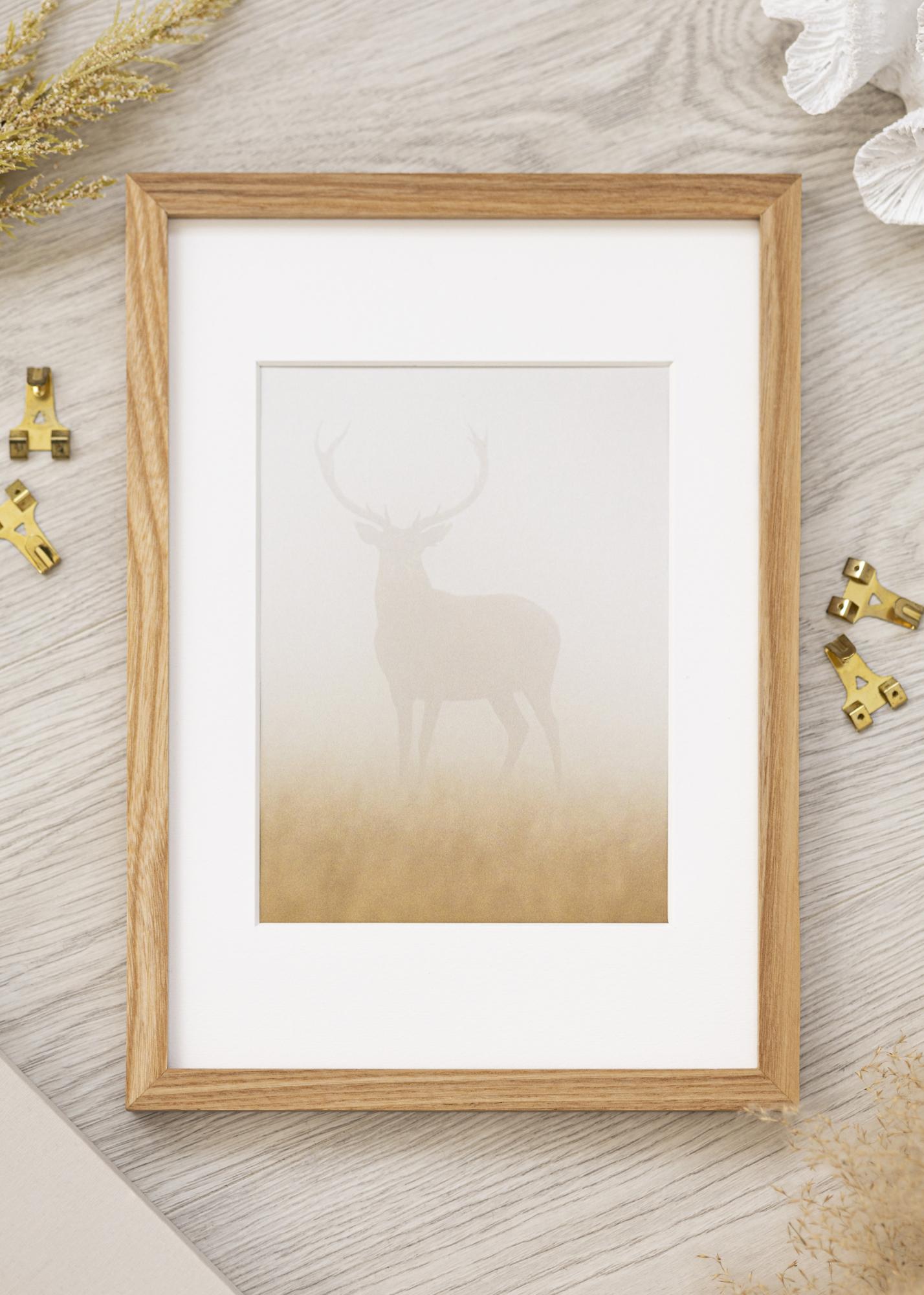 See elegantne täispuidust tammepuust pildiraam on täiuslik stiili ja funktsionaalsuse kombinatsioon. Oma loomuliku ja sooja puitviimistlusega annab see ajatu tunde, mis sobib nii modernsesse kui ka traditsioonilisse sisekujundusse. Raami suurus on 42x59,4 cm, muutes selle ideaalseks A2-formaadis lemmikmotiivide esiletõstmiseks. Tamme kaunis soonimine annab igale raamile ainulaadse iseloomu, tehes sellest suurepärase valiku harmoonilise atmosfääri loomiseks teie kodus.